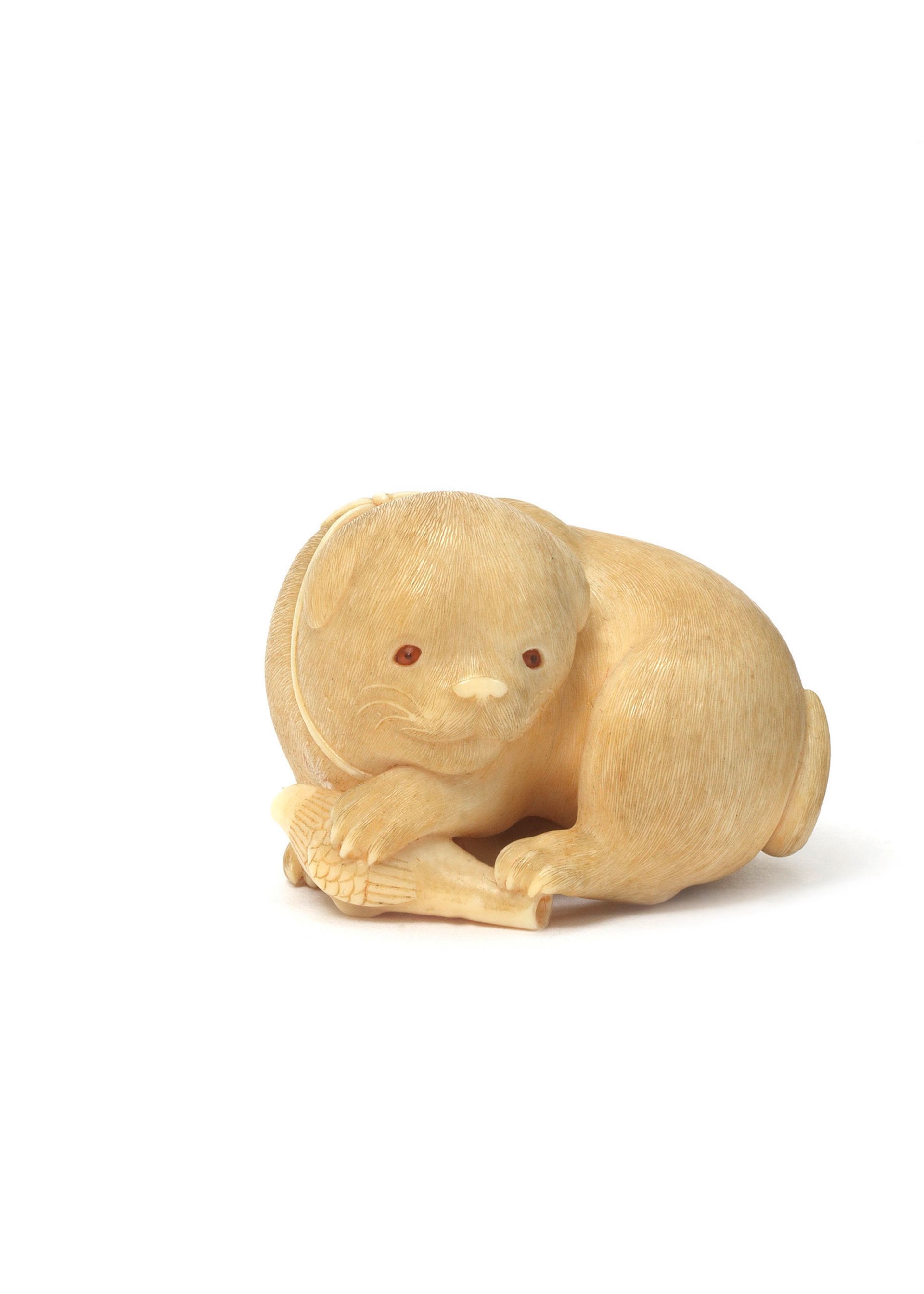 10 May: The Julius and Arlette Katchen Collection of Fine Netsuke: Part II A Japanese ivory netsuke of a puppy (mid/late 19th century) by Kaigyokusai Masatsugu