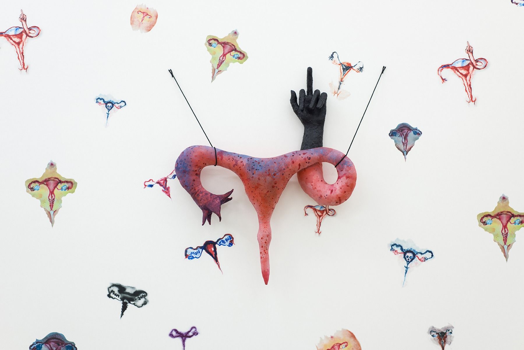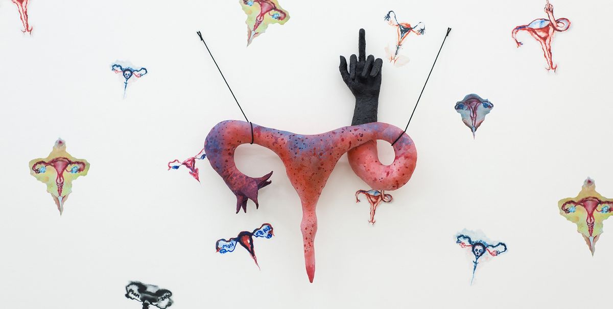 The female body dominates throughout this exhibition with an often hilarious ferocity. One room is lined with wallpaper printed with delicately coloured uteruses, some with fallopian tubes that end in a flicking middle finger. This up-yours uterus also reappears as a soft sculpture, while another uterus sculpture dons a tutu and is blown around the room by an electric fan. Things get more angry in watery acrylic paintings of menstruating women emblazoned with the words “Bloody Mary” or “My Ketchup”. These are joined by bobbing rows of breasts and pictures referring to the Ukrainian group Femen, whose naked torsos carry slogans such as “Fuck Your Morals” and “I am my Own Prophet”. In the world of Messager, nuns go topless and paint “In Gay we Trust” across their breasts. But while it’s hard not to applaud the vehemence of this one-woman pussy riot, at times her fury can tip into farce.