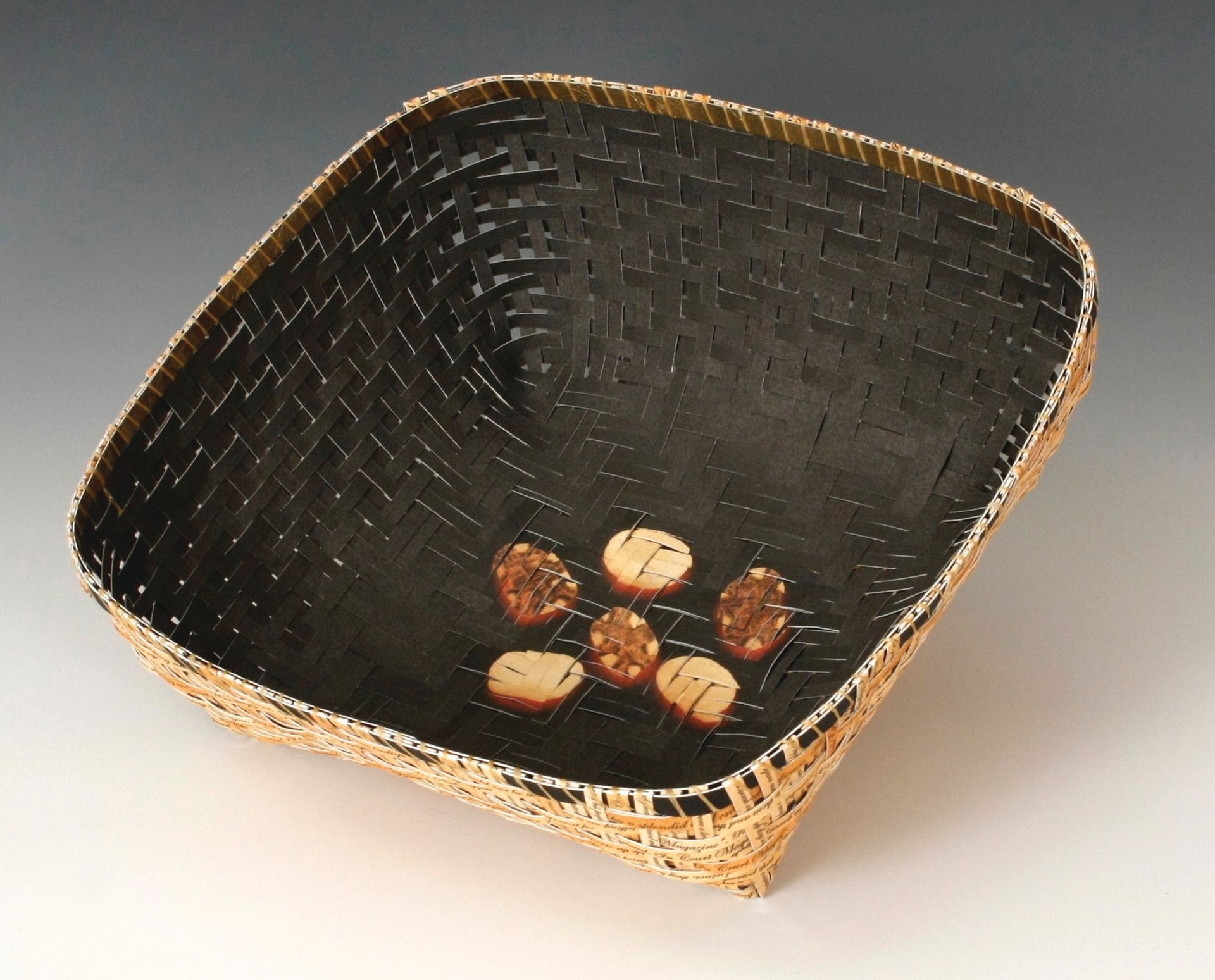The Native American artist Shan Goshorn created this work after examining a Cherokee gambling basket in the archives of the Smithsonian Institution in Washington, DC. The exterior features historical accounts of three Cherokee warriors’ journey to England to visit King George III in 1762.