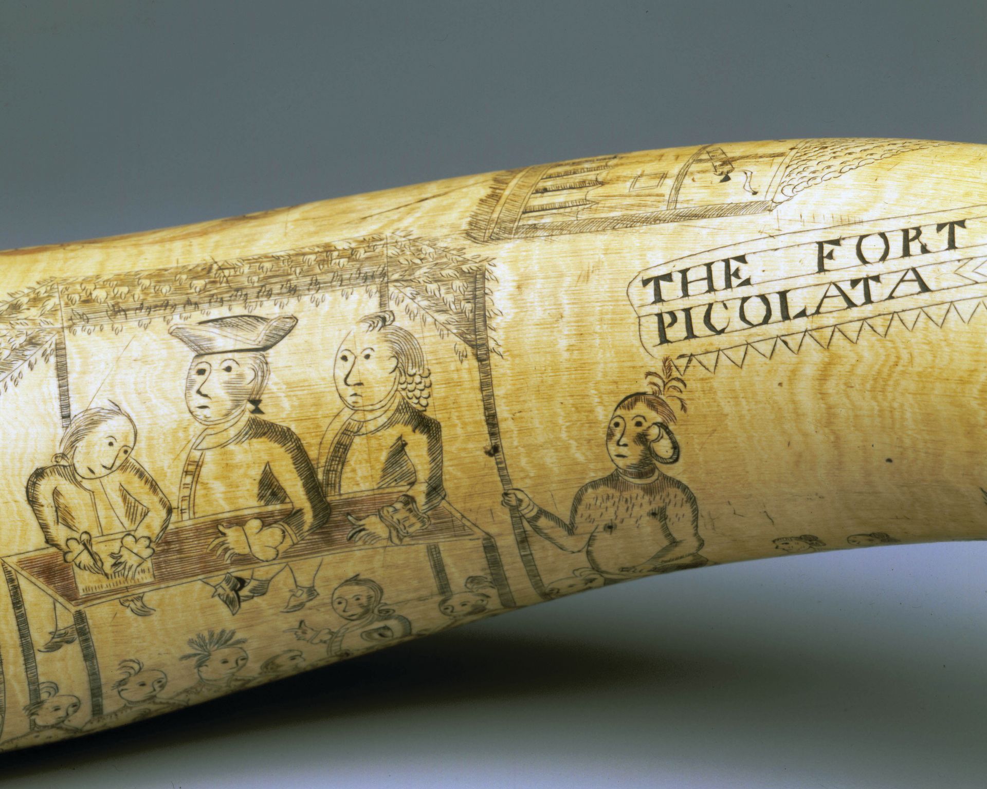 Treasure hunt: objects found for the Charleston Rooms Powder horn with scenes from the Indian Congress at Fort Picolata (1768)