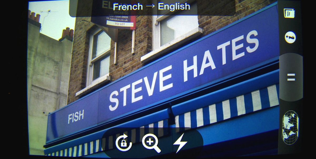 For his first solo show in Italy, taking place at Alma Zevi gallery, Smith will be showing a recent film that employs the services of a translation app. Steve Hates Fish (2015) shows footage from an app that automatically translates text picked up by its camera. But in this instance, Smith has set it to translate from French to English, while pointing the camera at English shop signs, with some curious outcomes as the software struggles to decipher the data. Among the many mistranslations, the food delivery service Just Eat becomes Just Fat, while a renowned north London fishmonger Steve Hatt is shown as Steve Hates Fish—giving the work its title.