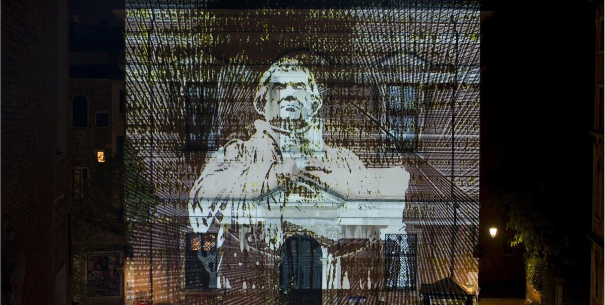After projecting his work onto Cologne Cathedral, the German artist Philipp Geist is again illuminating a church. During the Venice Biennale this year the artist is projecting words and pictures onto the German Lutheran church on Campo SS. Apostoli. As part of the 500th anniversary of the Reformation, Geist is projecting portraits of the reformist Martin Luther (1483-1546) as well as words that represent his role for the church and society onto the facade of the building located near the Rialto bridge. Geist tells The Art Newspaper that visitors should not only reflect on what the Reformation meant in the past, but also today. "At that time, things changed rapidly. The age of enlightenment started and printing was invented. The way Luther used handbills made him almost a blogger. Today the internet and digitalisation make up a similar revolution,“ he says.