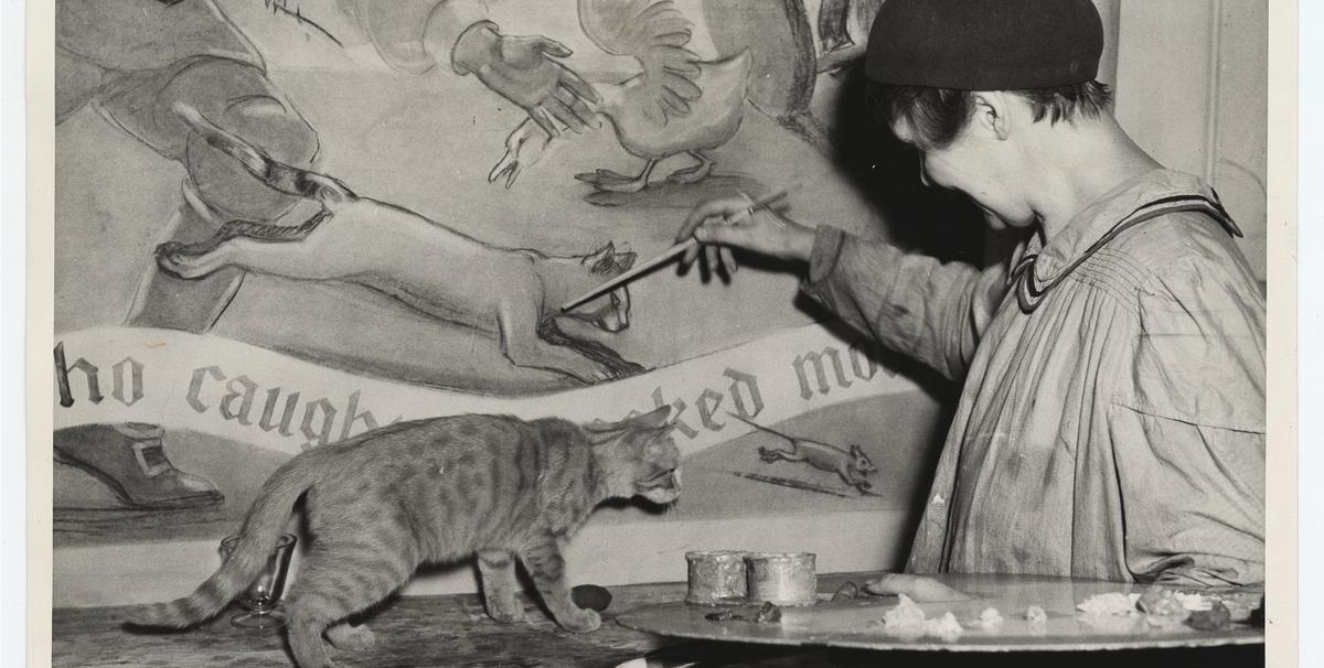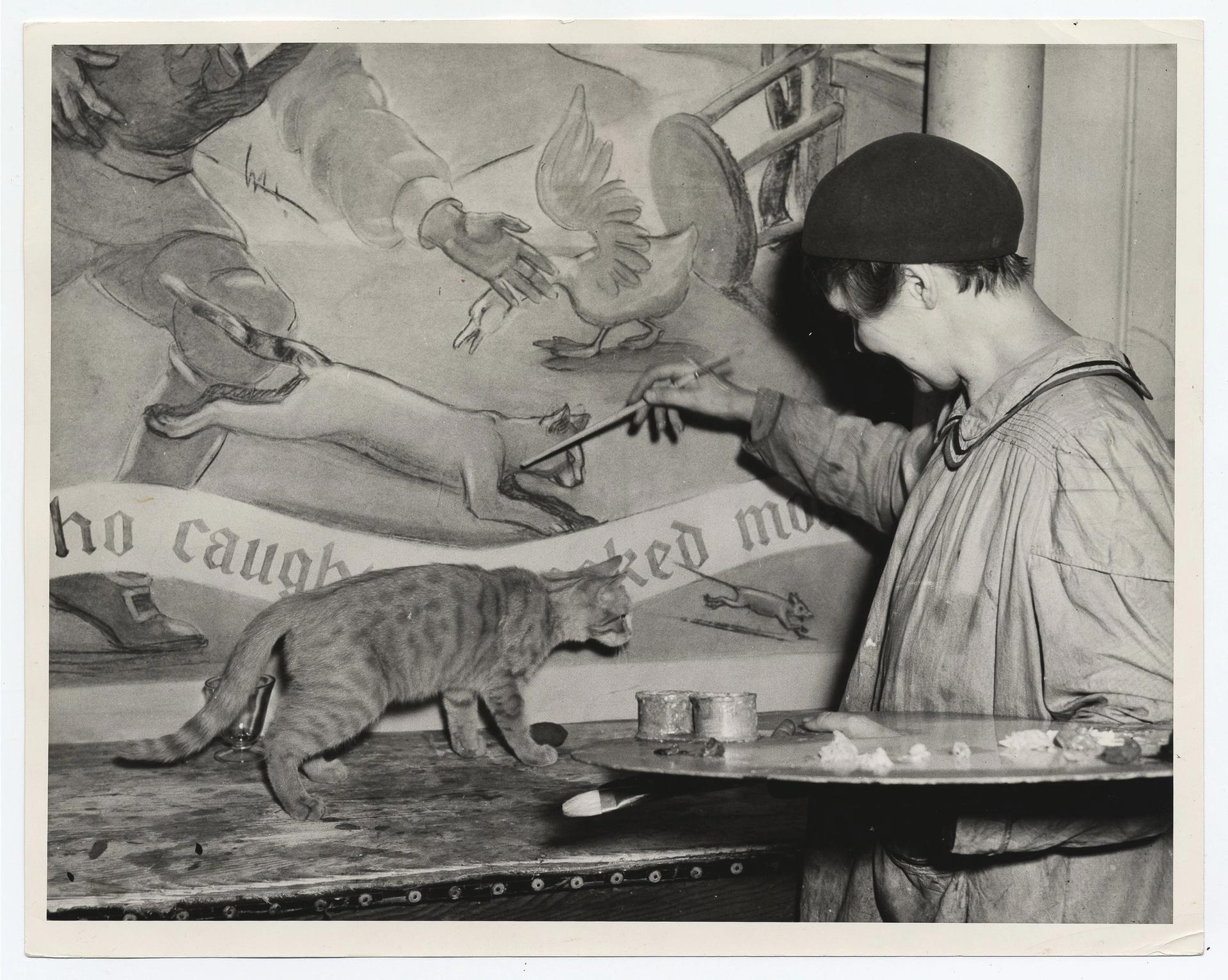 Emily Barto at work on her mural Animal Tales for a New York hospital in 1937 Photo: Andrew Herman