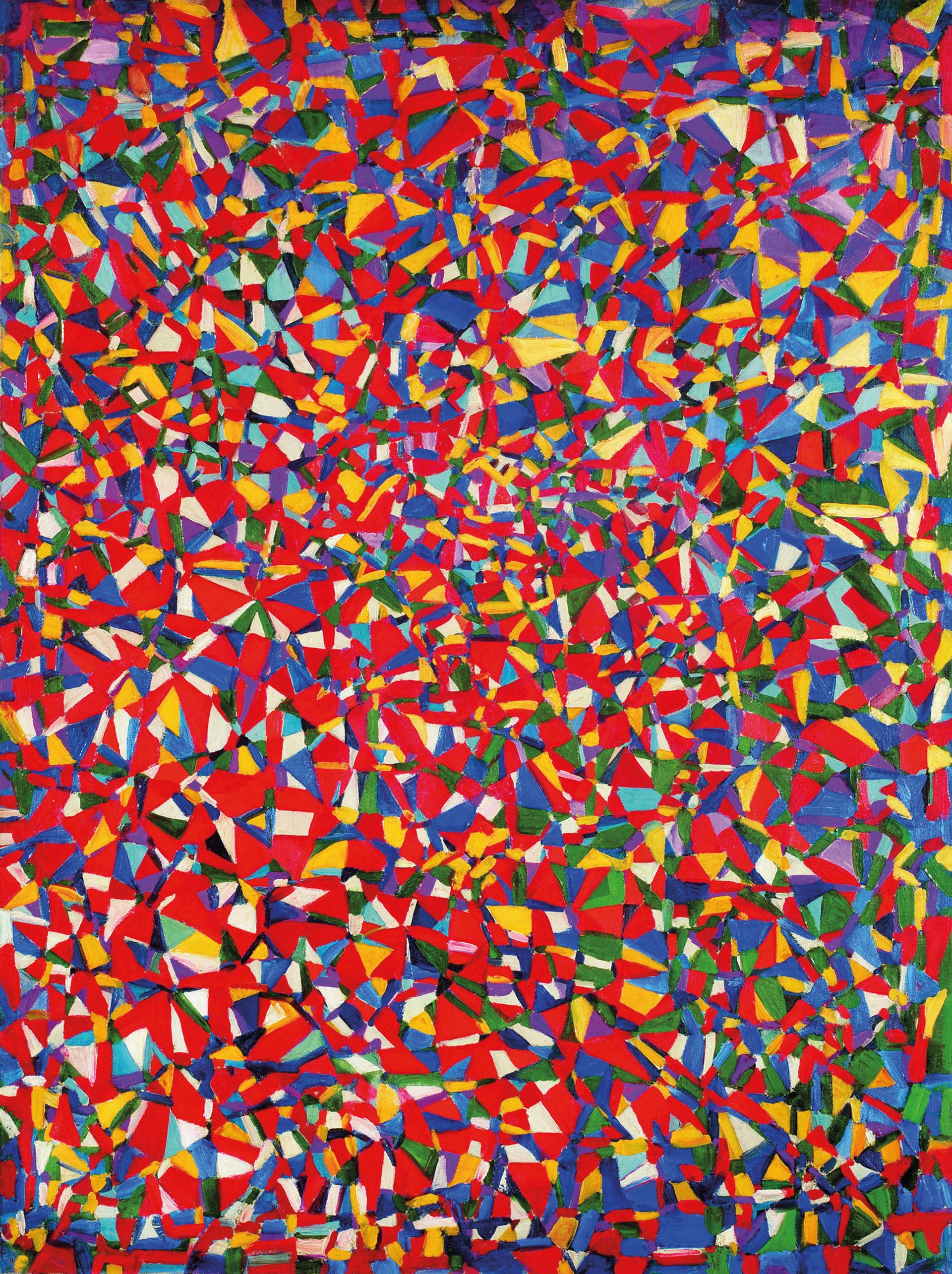 Zeid’s own less-than-gentle treatment of her works also has had an effect. Photographs show how she nailed her large abstract paintings, as much as six metres tall, to the wall and tacked others to the ceiling. She was also known for a peculiar party trick that involved unfurling her large canvases to create a red carpet from the gate to her front door. “The only way for guests to get into the party was to walk over the canvases,” Greenberg says. “She was actually quite rough with the works herself.”