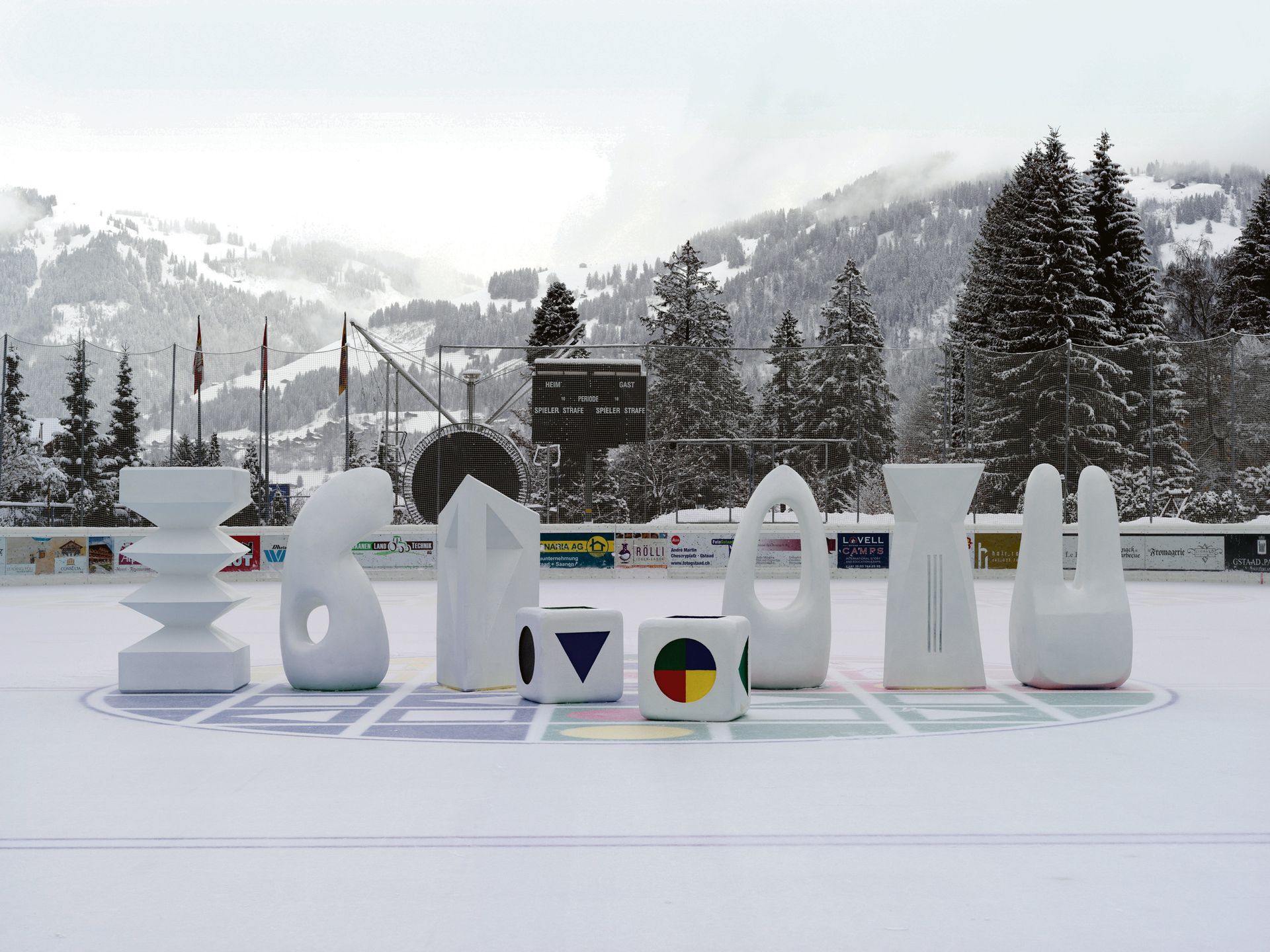 The first edition of the site-specific exhibition in and above the ski resort of Gstaad featured work exclusively by Swiss artists. Comte turned the village ice rink into a giant board game, allowing participants to make up their own rules. Members of the public skated over five circular colour-field paintings beneath the ice and pushed around six chainsaw-carved polystyrene pawns.