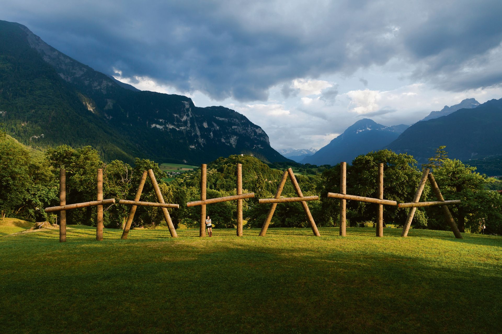 The smooth surfaces of Claudia Comte’s wooden sculptures bear little trace of her tool of choice: a chainsaw. Sanded and waxed to perfection in her Berlin studio, her abstract forms evoke cartoon cacti as readily as rigorous Brancusi totems. While wood remains an enduring love for the Swiss artist, who grew up in a chalet near a forest and learned her craft from local lumberjacks, she is also making a name for herself with ambitious installations in locations ranging from a mountain ice rink to the desert landscape of California’s Coachella Valley.