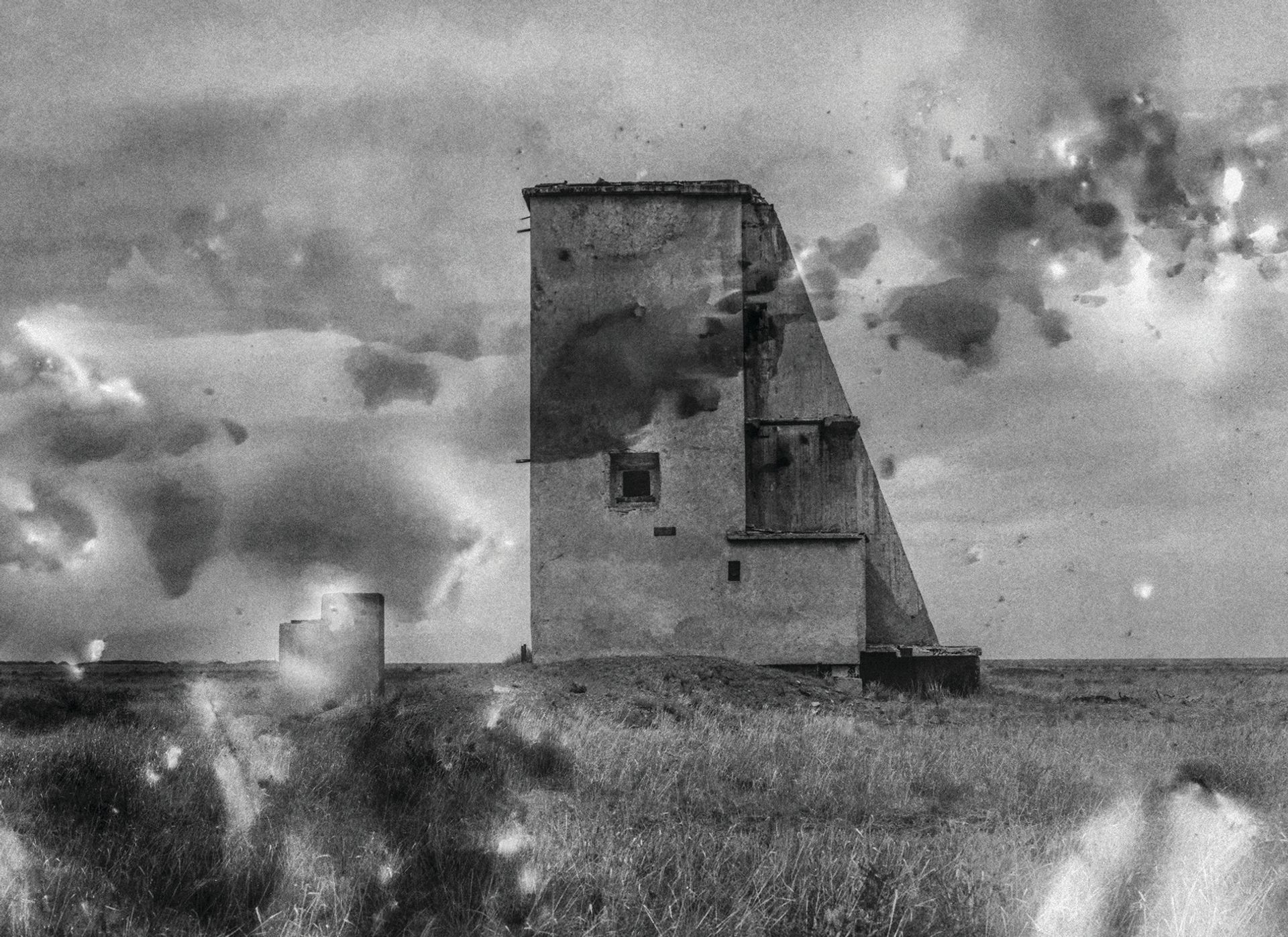 In 2014, Charrière travelled to Semipalatinsk in Kazakhstan, a nuclear test site for the Soviet Union from 1949 until 1989. Also known as the Polygon, the extent of the radioactive contamination of the site was not fully known for many years. Charrière’s photographs use analogue technology, but he exposed the negatives to radiation before printing. The images are reminiscent of Bernd and Hilla Becker’s documentation of the crumbling industrial structures of the Rühr, but for the white spotting caused by the deadly radiation.