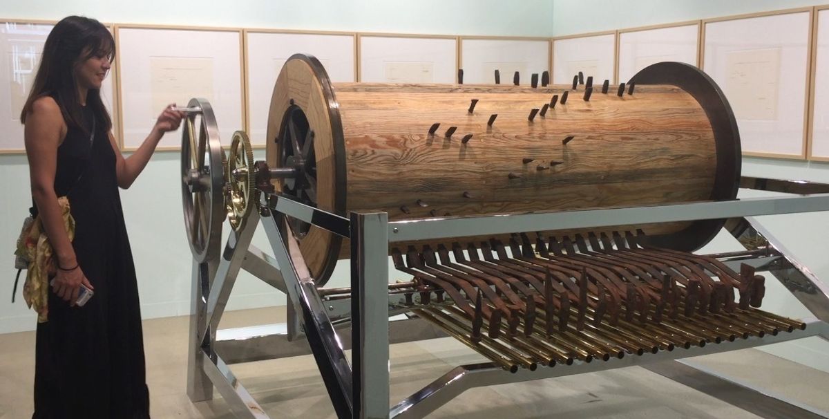 The easiest-to-operate mechanical work at the fair has to be Antonio Vega Macotela’s The Chisel and the Sinkhole (2016-17), a massive, music box-style instrument on the stand of the Mexican gallery Labor. A simple turn of the crank will get the work in motion and the only maintenance is a regular oiling of the gears. But the inevitable breakdown is a part of the art. “Right now, the artist sees it as just an instrument,” says the gallery’s Ana María Sánchez. One day, though, the work’s rusty hammers will corrode or its pipes will break and it will no longer be playable. “That’s when the tool will convert into a sculpture.”
