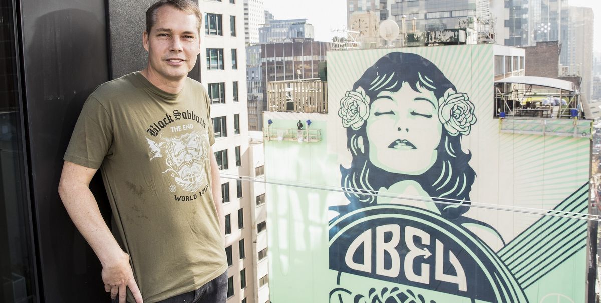 Shepard Fairey and his team of three assistants were in central Sydney this month, painting Fairey’s biggest ever mural on an office block wall, when a passer-by approached the Los Angeles-based artist with a man-to-man warning. “The women aren’t going to like that,” the man confided to Fairey, indicating the word “obey” written in huge letters directly below the mural’s beautiful face. Fairey scratched his chin, and told the man: “Well, maybe she’s saying ‘obey’ to the guys”.