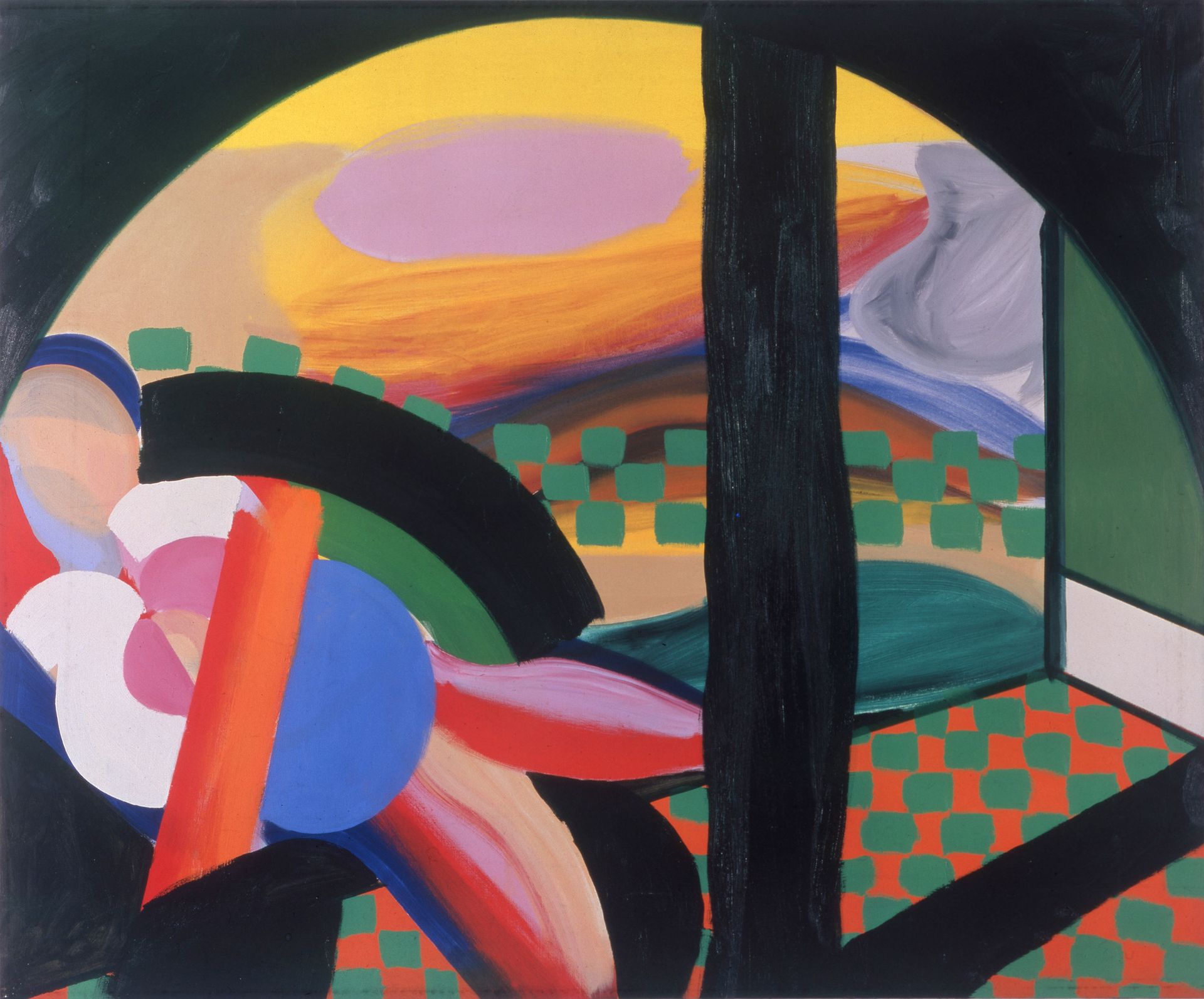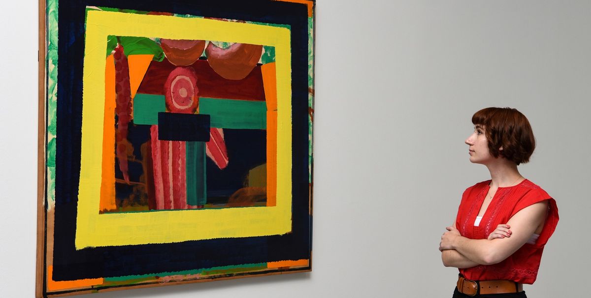 Via Hodgkin’s old gallery, Kasmin, a researcher at the Tate, a New York Times obituary, a publisher of a book on a collection of Native American art and an antique shop, Clayton was led to the family of A.J. Hirschfield, the name listed in Kasmin’s archive. “It turned out that they were the right Hirschfields, and not only that, they still had the painting,” she says. “It was in their log cabin in Wyoming.” Hodgkin never saw the painting again in the flesh but Clayton showed him a photograph of it in situ on the log-cabin wall.