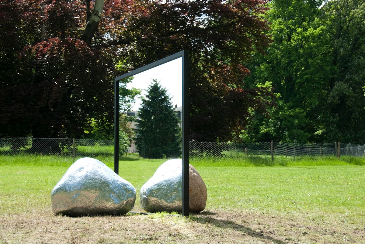Kwade often uses mirrors and replicas of rocks made from different materials in her work. “She plays with our perception of truth and confounds what we believe to be real objects, real space, material and light,” Lilley says. “Her stones and mirrors form an almost magical door into alternative reality,” she adds, bringing to mind Lewis Carroll and transcendental philosophy.