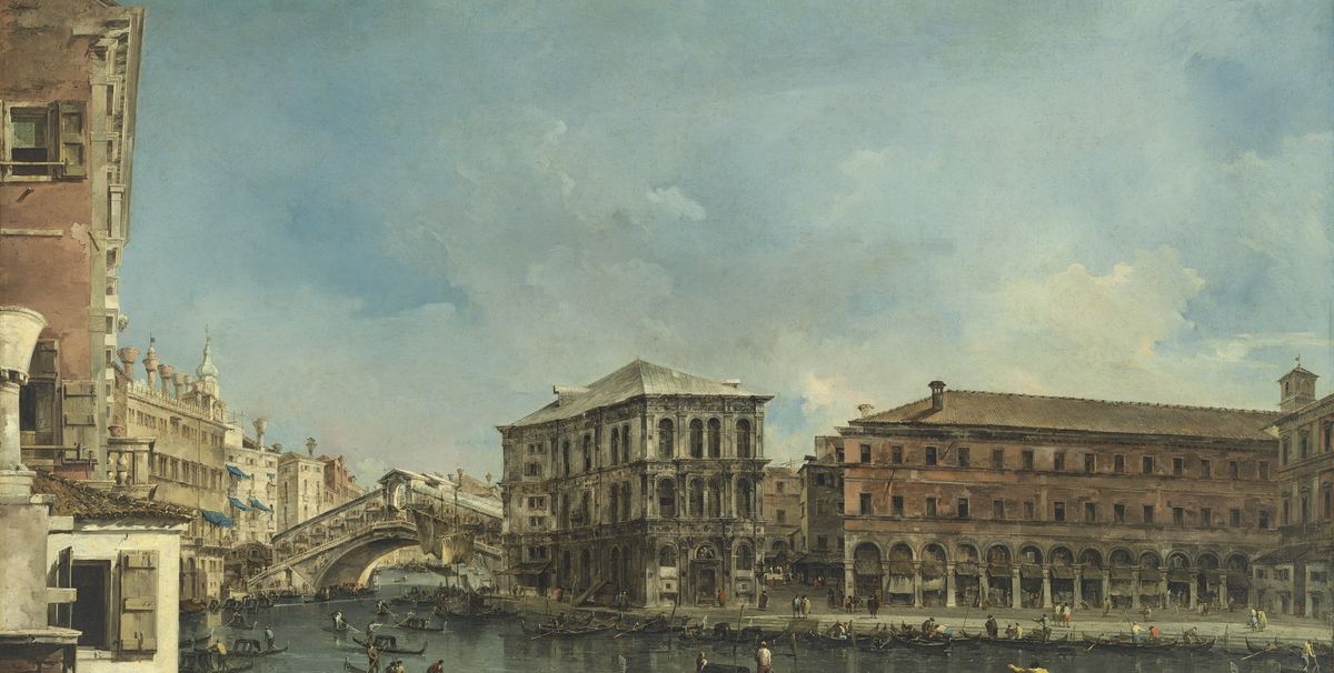 A dramatic painting by Francesco Guardi of the Rialto Bridge and the bustling Grand Canal is being sold for the second time since it was painted in the mid-1760s, having been handed down through generations of the Guinness family. The work, which shows one of a pair of views that Guardi painted of the famous Venetian scene (one looking north and one looking south), “is one of the greatest 18th-century view paintings of Venice and one of the greatest pictures Guardi ever painted,” says Henry Pettifer, the head of Old Master paintings at Christie’s. Both views were first acquired, most likely from the artist, in 1768 by a young English grand tourist called Chaloner Arcedeckne and stayed in his family until 1891, when they were sold privately for £3,850 to Edward Cecil Guinness, the chief executive and then chairman of the brewing company. The paintings were eventually separated in 2011 when the pendant, Rialto Bridge from the Fondamenta del Carbon, was sold to an anonymous bidder at Sotheby’s for £26.7m—a record for a Venetian view painting. The work returned to Venice for the first time for an exhibition at the Aman Hotel earlier this year and then travelled to Hong Kong before it is being auctioned in London this week.—A.S.