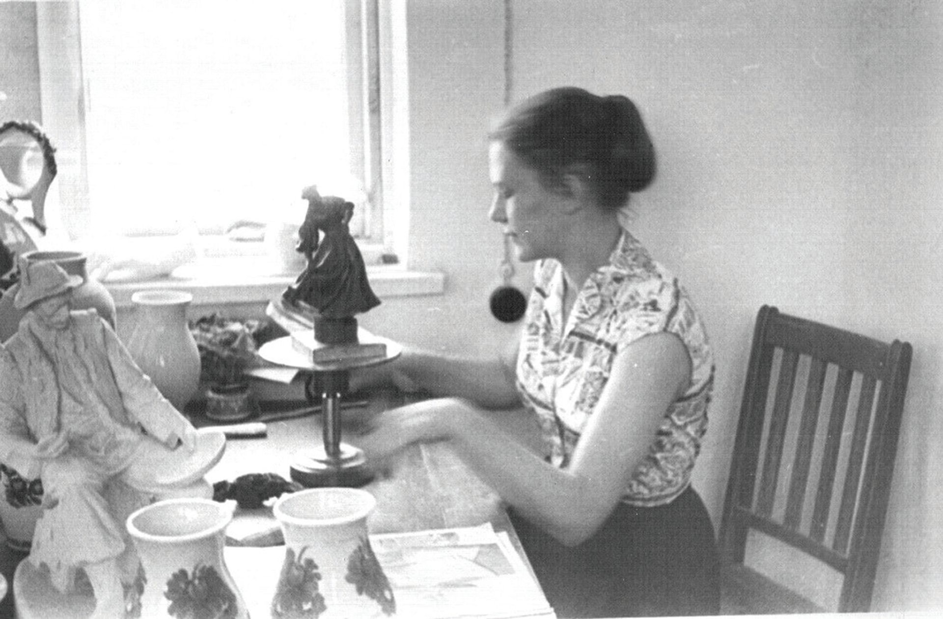 Oksana Zhnikrup was born in 1931 in Chita, Siberia, to Ukrainian parents; her grandfather had moved to Siberia before the Revolution to build railroads. Her mother was an actress, her father a civil servant who was executed in 1937 under dictator Joseph Stalin after being accused of being a spy. Zhnikrup was not permitted to study in Kiev because of her family background and instead went to art school in Odessa, where she met Shcherbina. Their marriage was short-lived but they worked together for years at the Kiev factory. The works they produced had to comply with Soviet rules on artistic production; approved themes included the military and the glorification of labour.