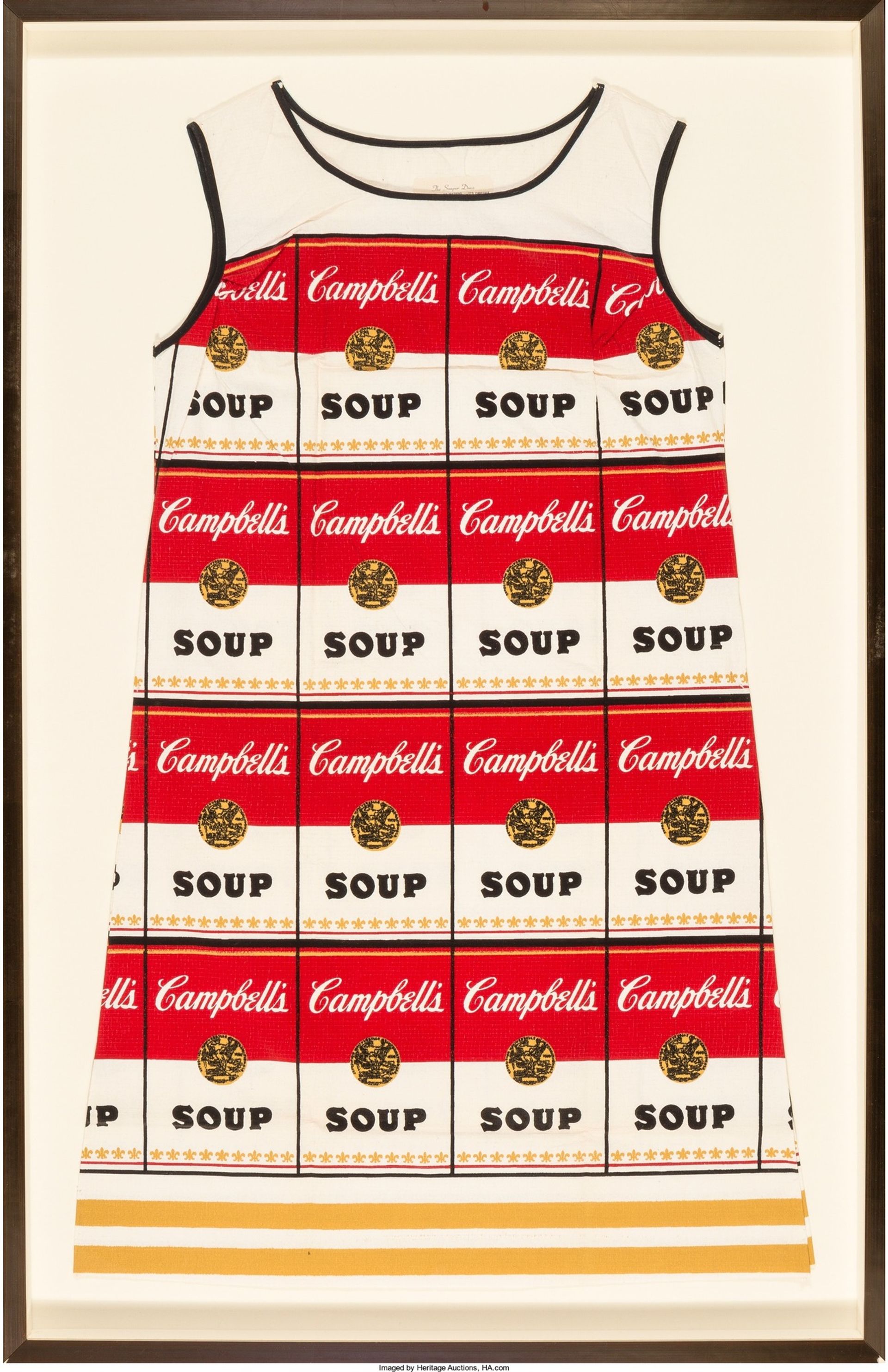 One highlight of the house’s online auction of prints and multiples is a framed edition of the wearable paper dresses that were produced by the Campbell’s Soup Company in the late 1960s in response to Andy Warhol’s Campbells Soup Cans (1962)—one of the most iconic works of the Pop Art canon. Warhol’s original work, which belongs to the collection of the Museum of Modern Art (MoMA) in New York, comprises 32 canvases that show varieties of the soup in the chronological order that the flavours were launched on the market. The wearable paper mini dress, made from screen-printed colour on cellulose and cotton, was available to customers who sent in any two Campbell’s soup labels, along with one dollar and their dress size. “The dresses epitomize the Pop Art sensibility of the intersection between art, commerce and fashion”, Taylor Curry, the consignment director of Modern and Contemporary art of the house, told The Art Newspaper. Various American institutions have acquired the historical dress, including the Fashion Institute of Technology and the Costume Institute of the Metropolitan Museum of Art in New York, among others. In 2000, the Whitney Museum of American Art included the dress in an exhibition focusing on Andy Warhol’s contribution to fashion, which also included his early work as a fashion illustrator.