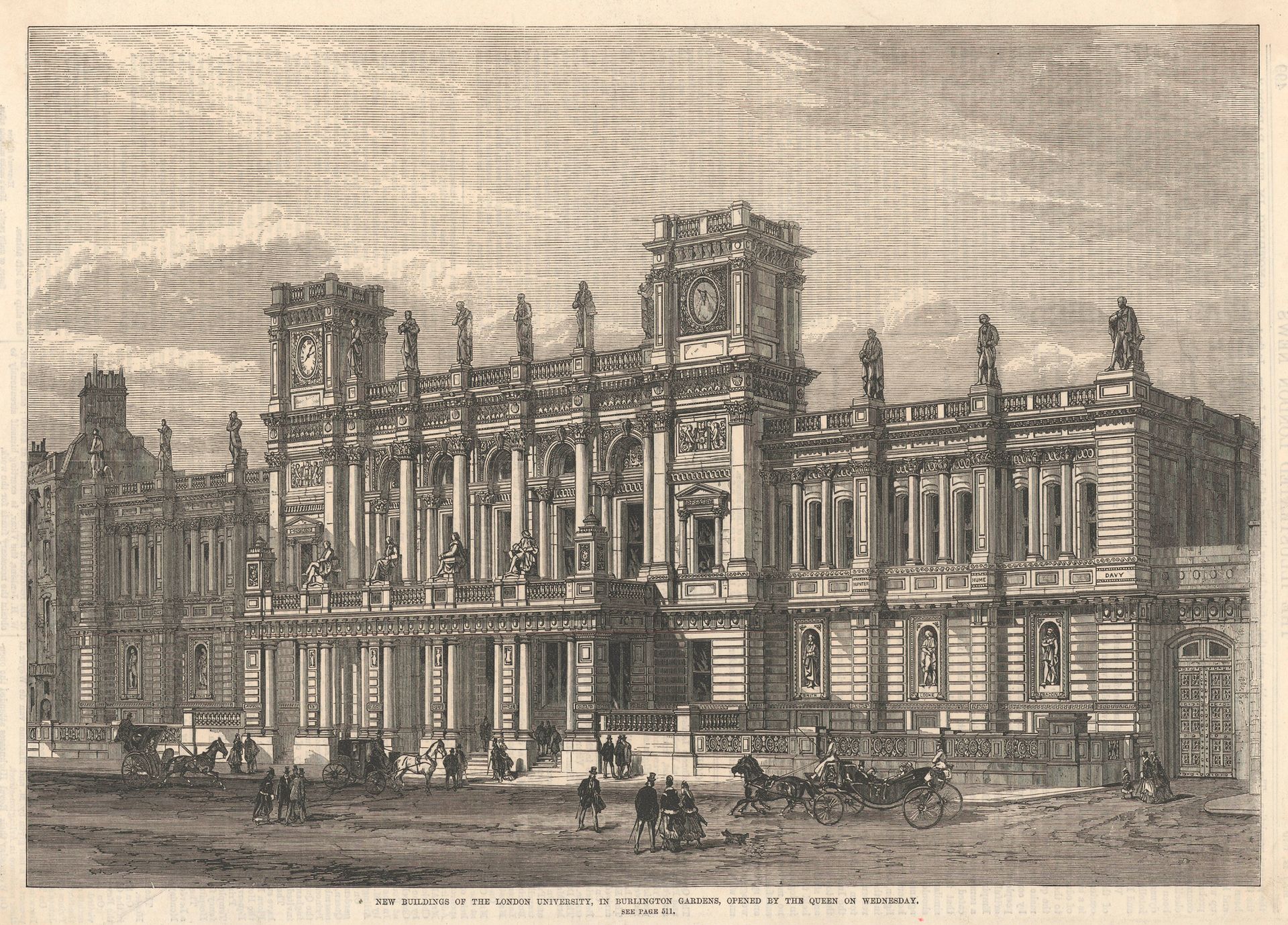 • 1870 Burlington Gardens, designed by James Pennethorne, is officially opened by Queen Victoria; it serves as the headquarters of the University of London until 1900
