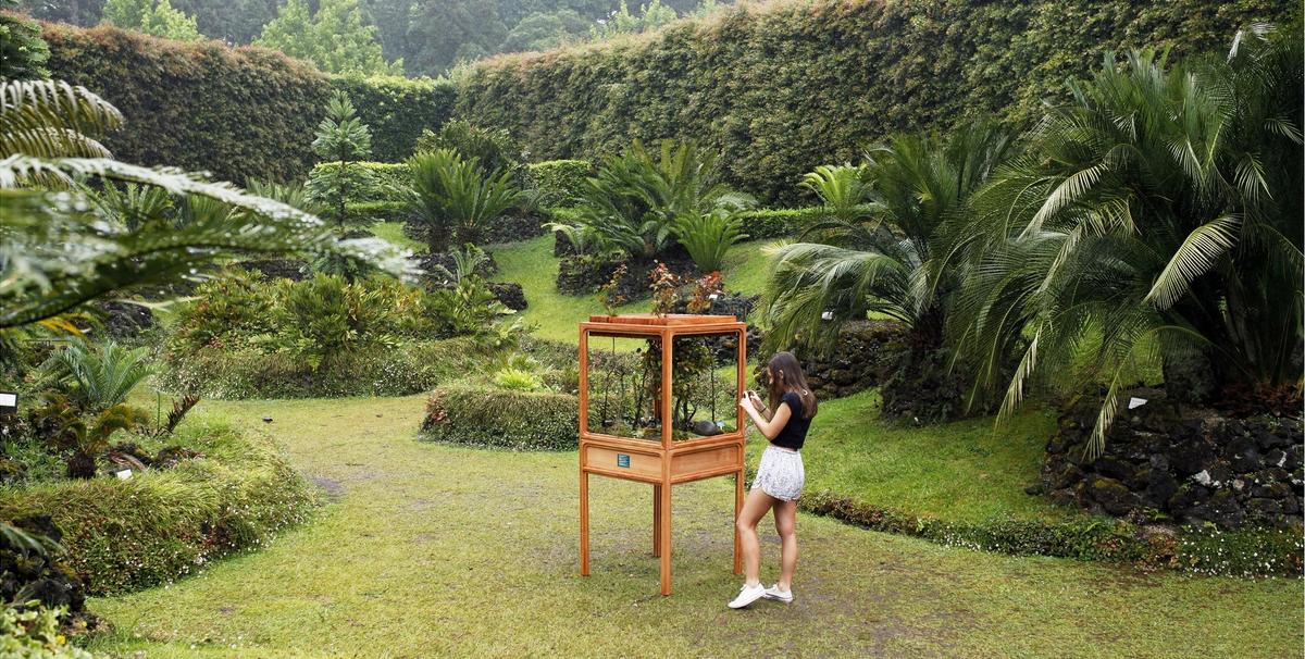 Another public work is Nordic Miniature (2017) by the Berlin-based artist duo Benandsebastian. This vitrine of diminutive imported trees situated in the grounds of the Terra Nostra botanical park is a nod to the island’s historical location on trade routes and fertile climate.