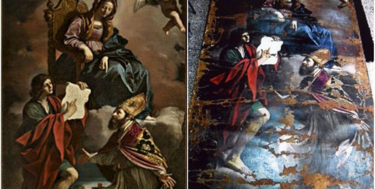 A Guercino altarpiece that was stolen from an Italian church in 2014 and recovered in February in Casablanca will now undergo a year of conservation in Rome to reverse the damage. Italian and Moroccan authorities returned the painting, Madonna with the Saints John the Evangelist and Gregory Thaumaturgus (1639), to Italy earlier this month. As the criminal investigation continues in Morocco, the work will be treated by specialists at the Italian government’s Superior Institute for Conservation and Restoration (ISCR).