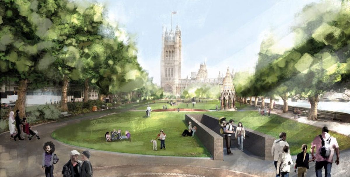 The proposal by Caruso St John Architects, Marcus Taylor and Rachel Whiteread comprises two parts: a cast translucent sculpture of the Buxton Memorial, unveiled in 1866 at Victoria Tower Gardens, and the Hall of Voices where visitors will hear the accounts of Holocaust survivors.