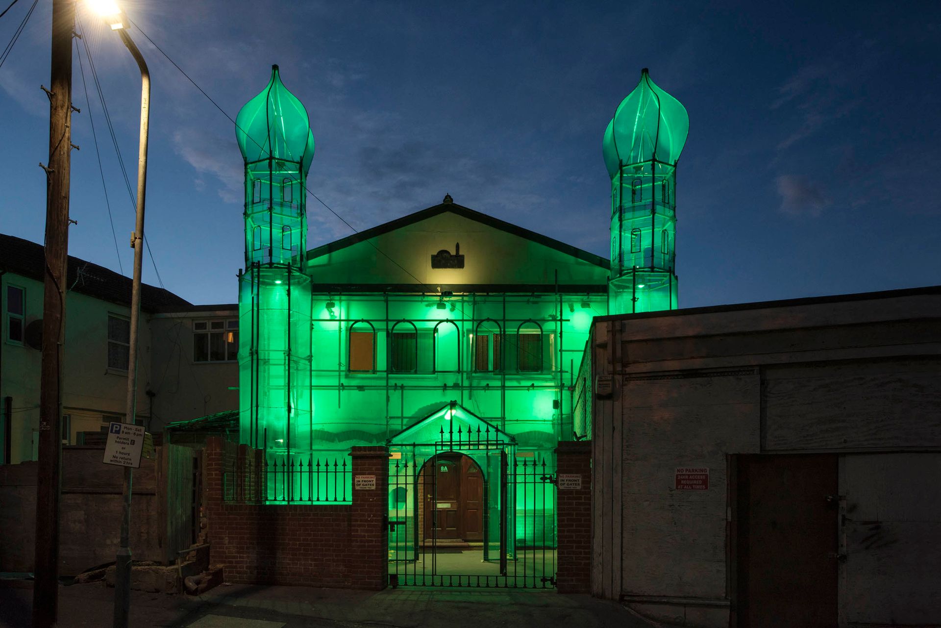 “The Muslim community here has been incredibly supportive,” says the Malaysian artist HoyCheong Wong, commenting on how local groups have rallied behind his Minaret piece. HoyCheong has covered the façade of the Islamic Community Centre, which is used as a mosque, with an elegant, temporary veneer created in the style of Islamic architecture. At night, the minarets and arches are lit up. “That’s when it becomes much more spiritual,” the artist says, stressing that the installation will be dismantled as soon as the triennial ends.