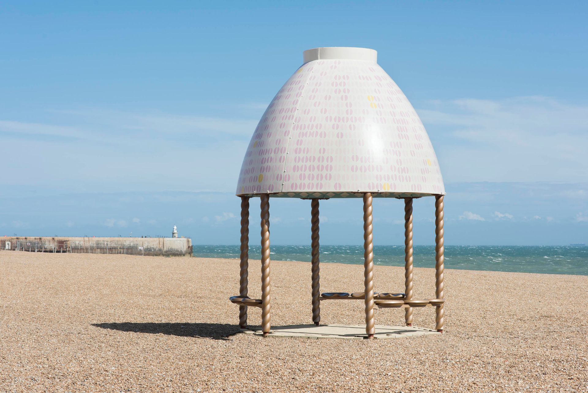 Lubaina Himid likes jelly moulds, having collected them for a number of years. The Tanzania-born, Turner prize nominee has turned her predilection into a public art piece, creating a vibrant Jelly Mould Pavilion for the sea front. The work reflects “the way sugar has been the bloodstream of the British Empire”, Biggs says. The pavilion, located on the former Rotunda funfair site, also draws upon the town’s heritage; residents might indeed feel nostalgic as amusement arcades and a Lido pool once occupied the same beachfront area.