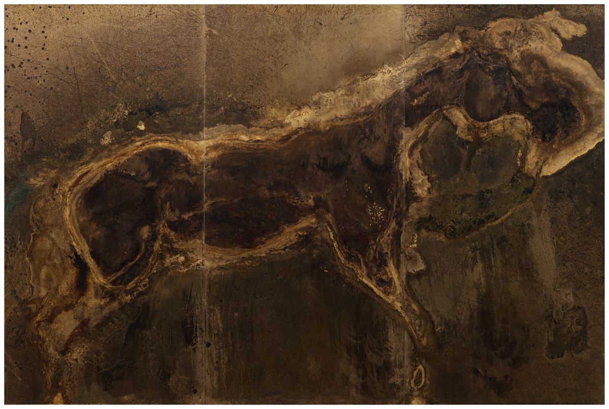 Not for the squeamish, the young Finnish artist Toni R. Toivonen (b. 1987) creates ethereal works from grotesque means. He leaves the carcass of an animal – a raccoon, mouse, dog, horses or cow, which died of natural causes – on a brass plate and as it decomposes, the animal etches a ghostly, vaguely discernible gesture of its form on the oxidised metal. The results are a form of vanitas, a meditation on the transience of life. For this work, Heavy, in brass, resin, plexiglass and “original substances of a dead animal”, Toivonen used a horse.The Helsinki-based Galerie Forsblom will devote their entire stand to the artist's macabre works at Copenhagen’s Chart Art Fair, the Nordic-focused contemporary art fair in its fifth edition.