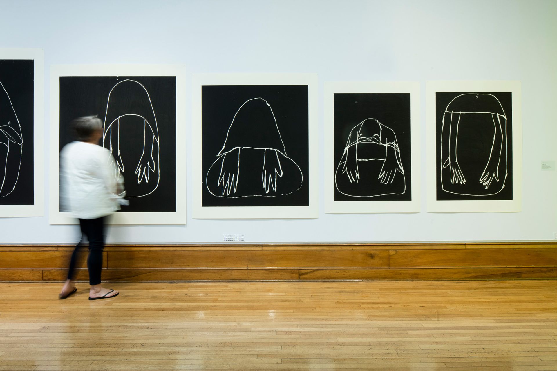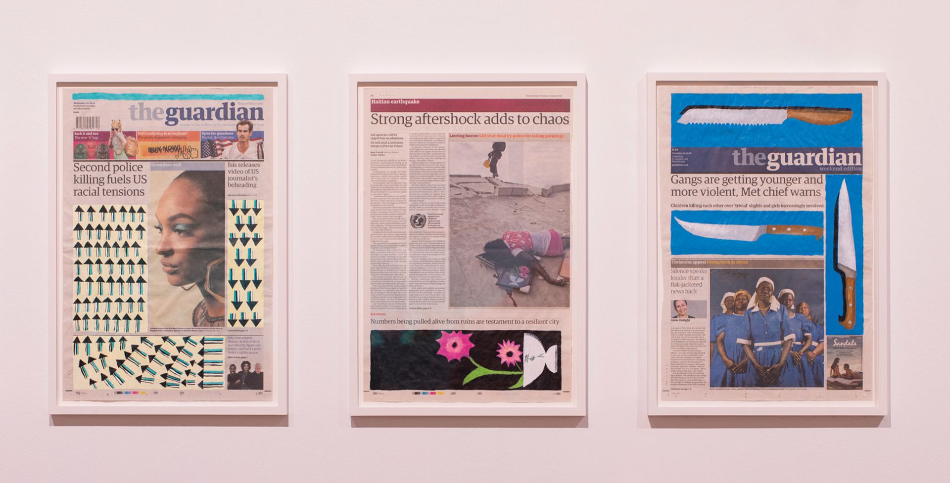 For the Negative Positives series (2007-16), Himid has painted over pages of The Guardian, highlighting the misrepresentation of black people in the media. “She uses painting and drawing to point out the unconscious use of caricature,” says the exhibition co-curator Sacha Craddock.