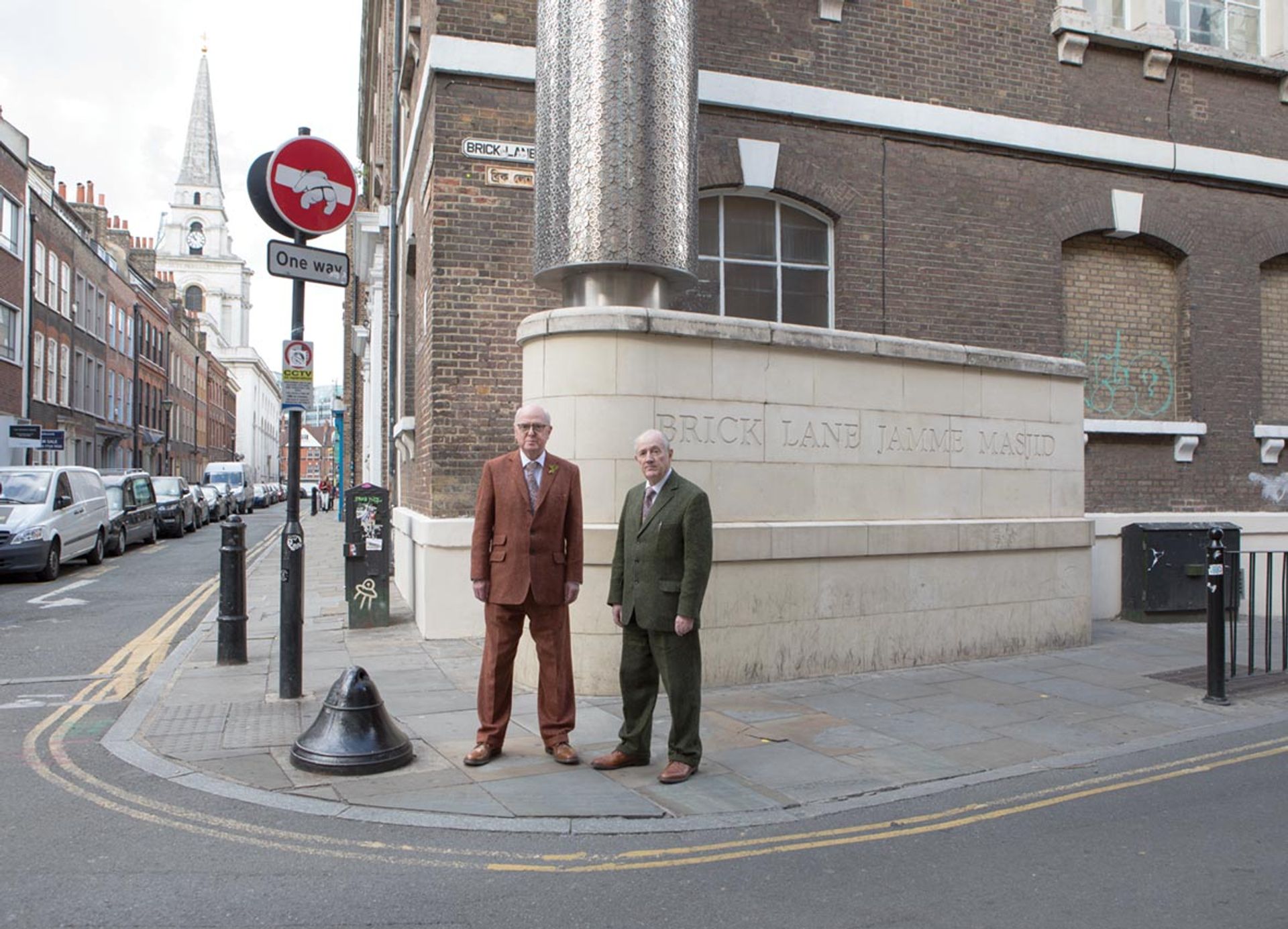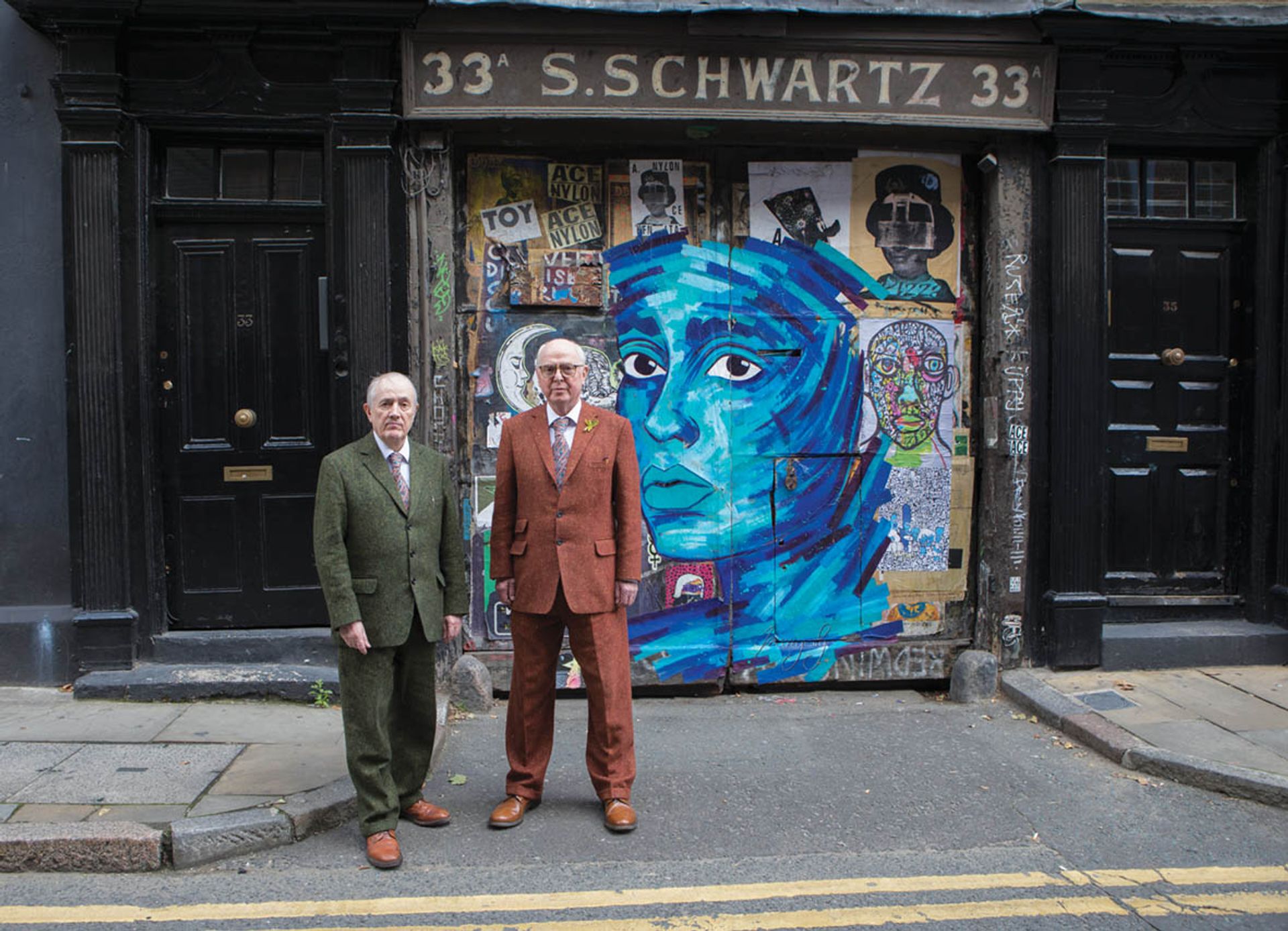 In the 50 years since the British artists Gilbert & George met as students at St Martin’s School of Art and moved to Spitalfields, the East London neighbourhood has seen Jewish bagel shops giving way to Bangladeshi curry houses, which are now being replaced by trendy cafés. The changing face of Spitalfields has inspired the duo’s most recent series, the Beard Pictures, which refer to everything from Santa Claus to Shoreditch hipsters and will debut this autumn at White Cube in London, New York’s Lehmann Maupin and Galerie Thaddaeus Ropac in Paris. We took this opportunity to let Gilbert & George show us around their stomping ground.