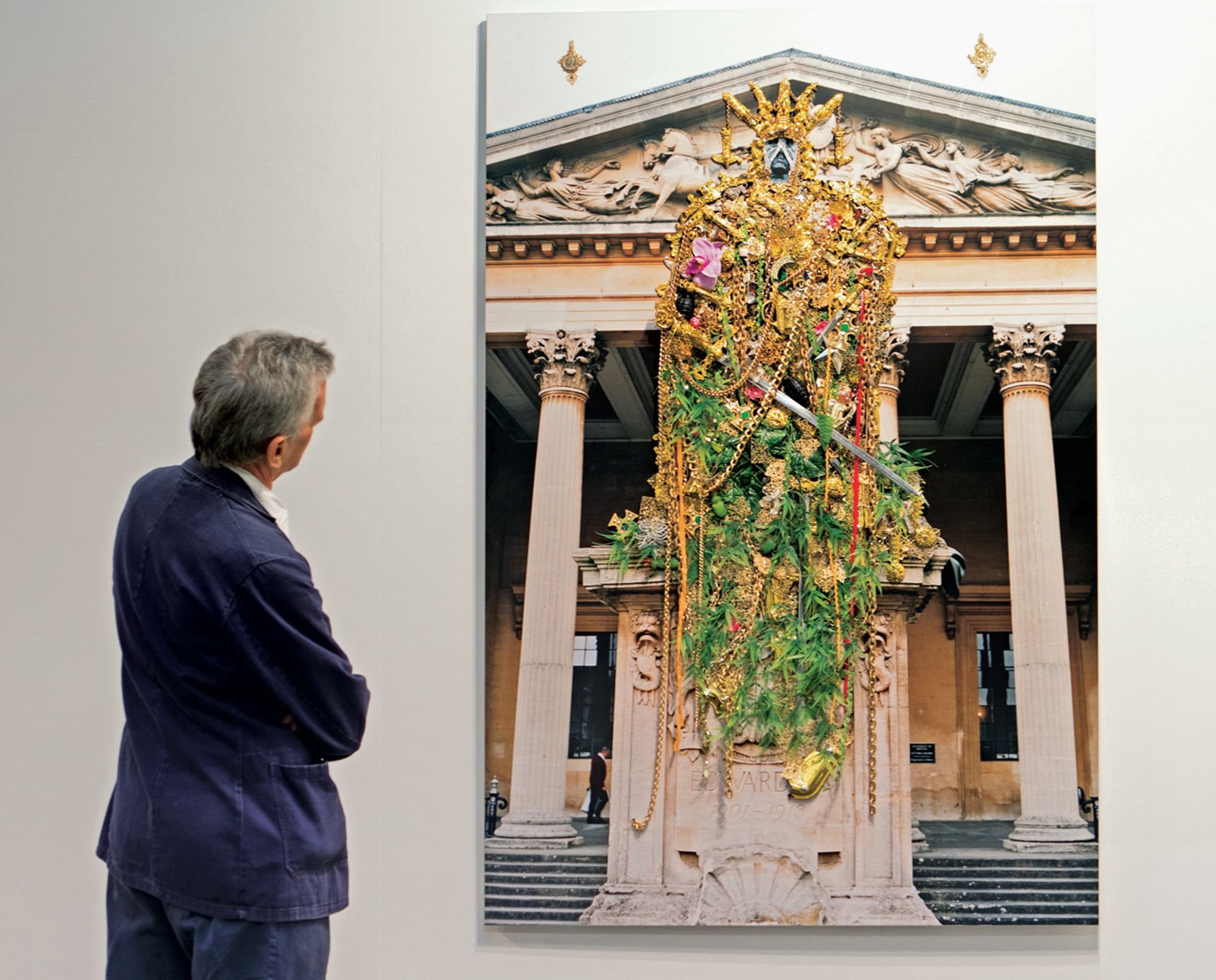 Monuments to British and Irish colonialists, including Edward Colston and Edmund Burke, come under scrutiny in three photographs embellished with cowrie shells and plastic jewellery by Hew Locke on P.P.O.W.’s stand (priced at $40,000 each). Created for the exhibition Artist and Empire at Tate Britain in 2015, the figures are all “men who abused their power economically through the slave trade”, says the gallery’s director Trey Hollis. Alt-Monuments, a talk at Frieze London tomorrow (12.30pm), will further examine how history is commemorated in public places.