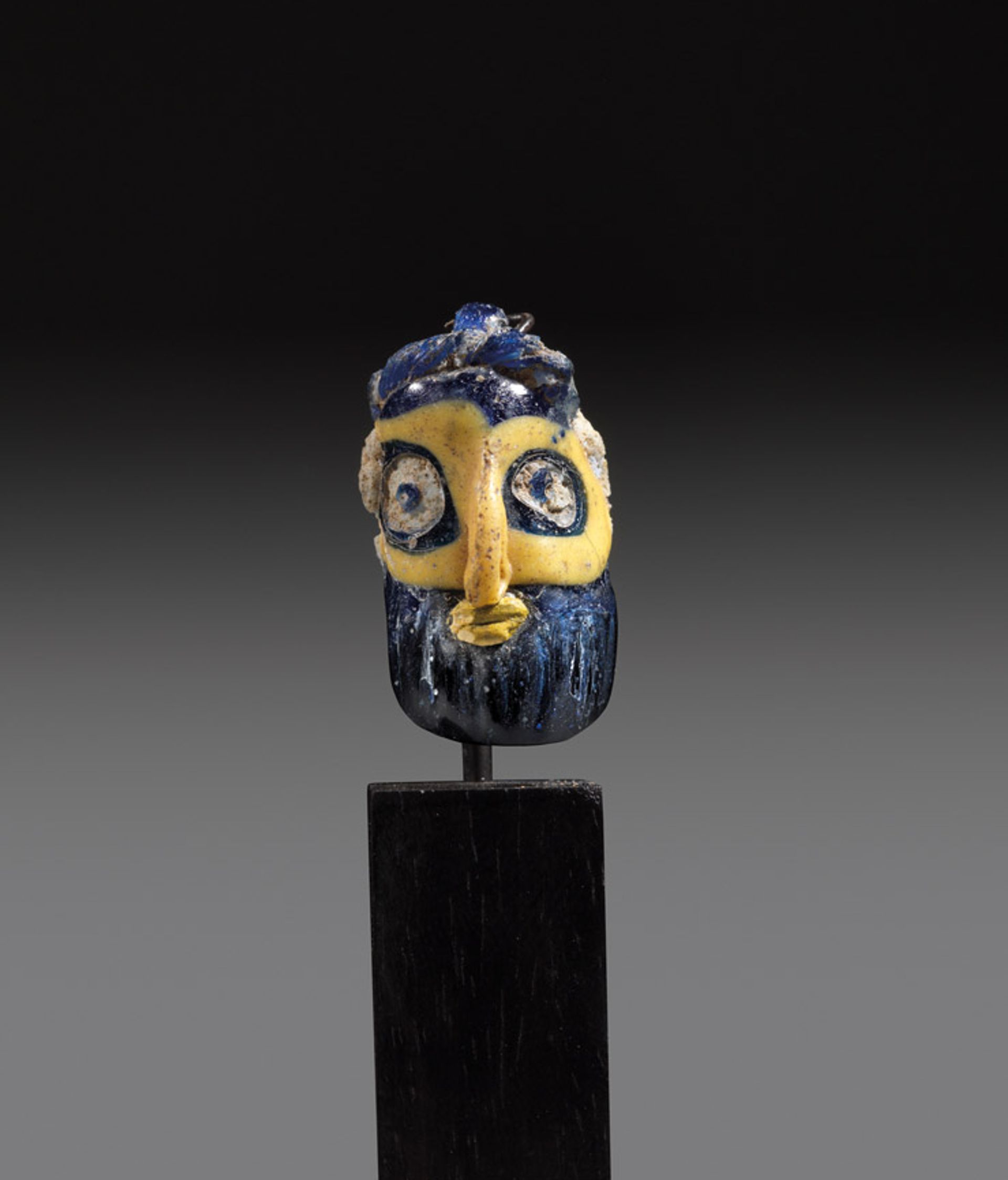 These small beads, which measure around 2cm to 3cm, would have been worn by the Phoenicians, who excelled in glass-making. Although it is probable that the beads were made in the eastern Mediterranean, they have been “found all over the empire because they are so portable”, says the gallery’s director Claire Brown.