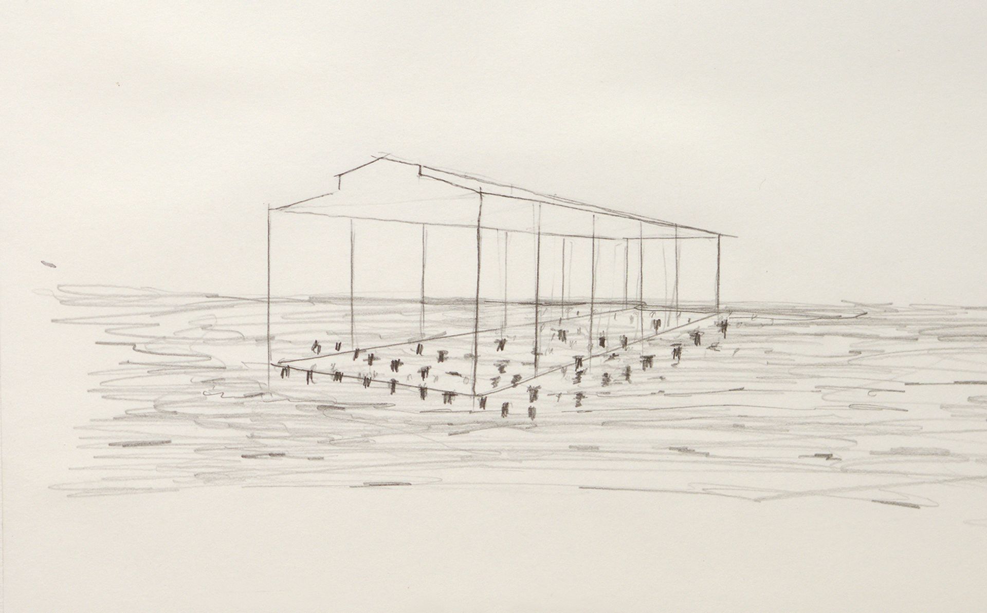 Now, the Whitney Museum and the artist David Hammons hope to pay tribute to Matta-Clark’s vision, as well as the Meatpacking District’s history, with a new public art proposal that was unveiled at a local community board meeting Wednesday night. Also titled Day’s End, as an homage to the original, the piece is a skeletal framework of the warehouse shed built from stainless steel poles anchored to the riverbed and the riprap of the adjacent Gansevoort Peninsula, which is due to be turned into a public park once the Sanitation Department moves out. The work seems to float above the river and its overall appearance shifts based on the weather and the time of day.