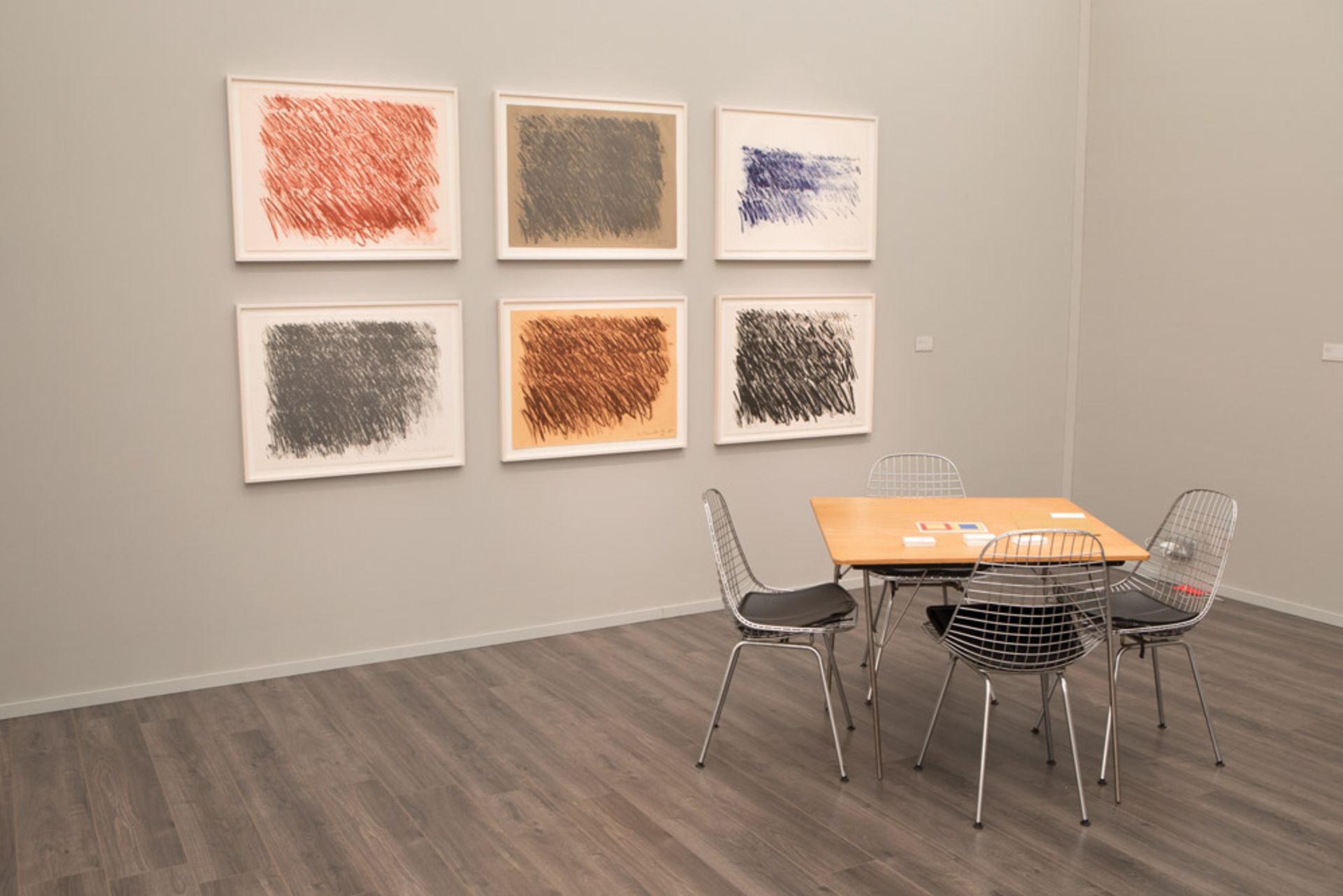 Cy Twombly and Robert Rauschenberg met as students at Black Mountain College in 1951 and travelled together the following summer to Italy and north Africa. Briefly lovers, they remained lifelong friends, although Twombly—profoundly inspired by Classical antiquity—spent most of his life in Italy. He inaugurated Rauschenberg’s Untitled Press workshop on Captiva Island, Florida, in 1971, with these calligraphic lithographs in editions of 24, 25 and 26. Rauschenberg was “deeply involved in the mixing of inks and the picking of paper”, says Alexander Jarolim of Craig F. Starr Gallery, which has sold the rare set of six for an undisclosed price.