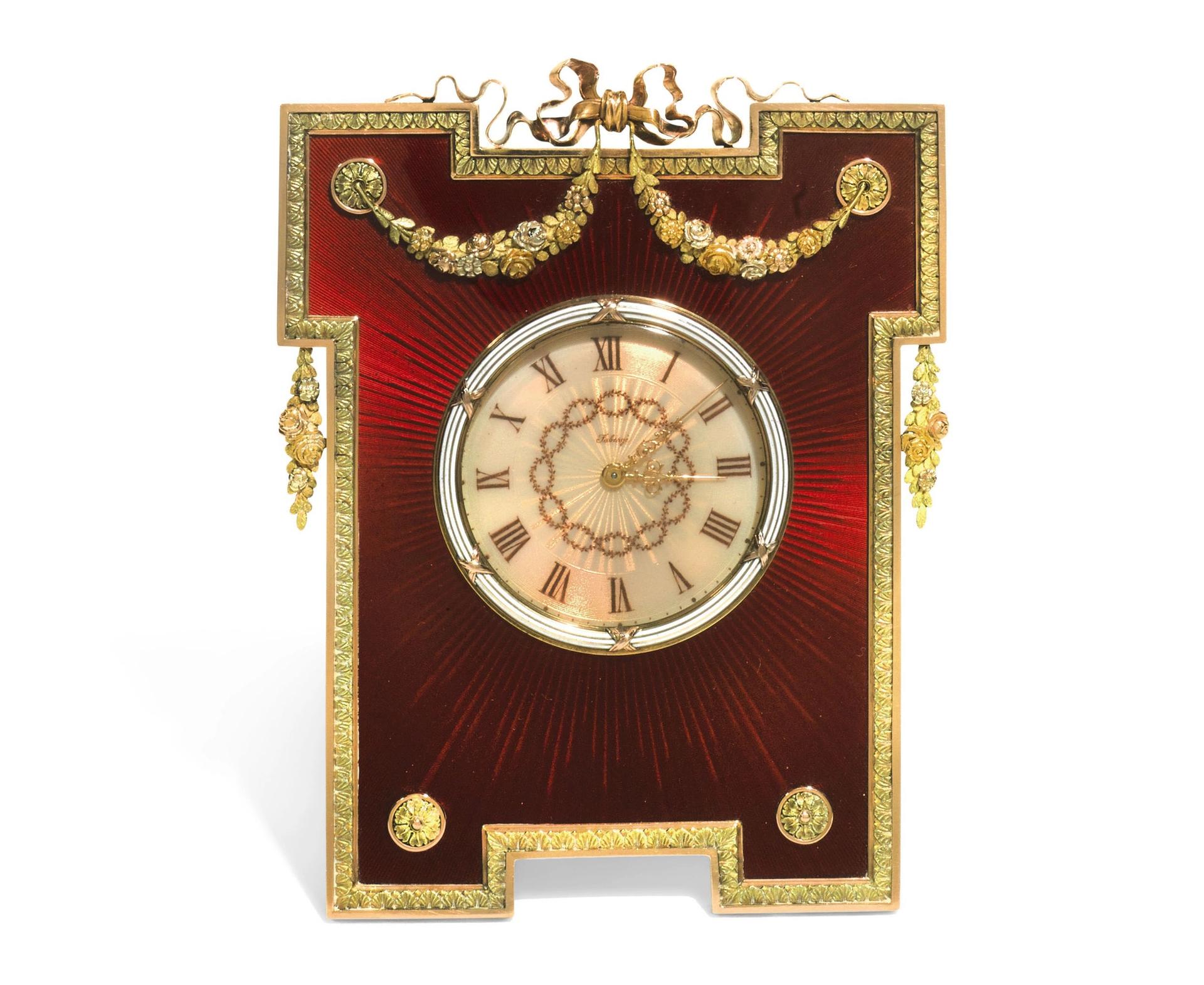 Highlights of the sale include a Fabergé gold and enamel timepiece, (1908-1913) by Henrik Wigström (est £120,000-£180,000), a coloured diamond necklace (around 1910) (est £240,000-£280,000) and a George III silver-gilt tray by London silversmith James Young, engraved with the coat of arms of John James Hamilton, 1st Marquess of Abercorn (est £150,000-£200,000).