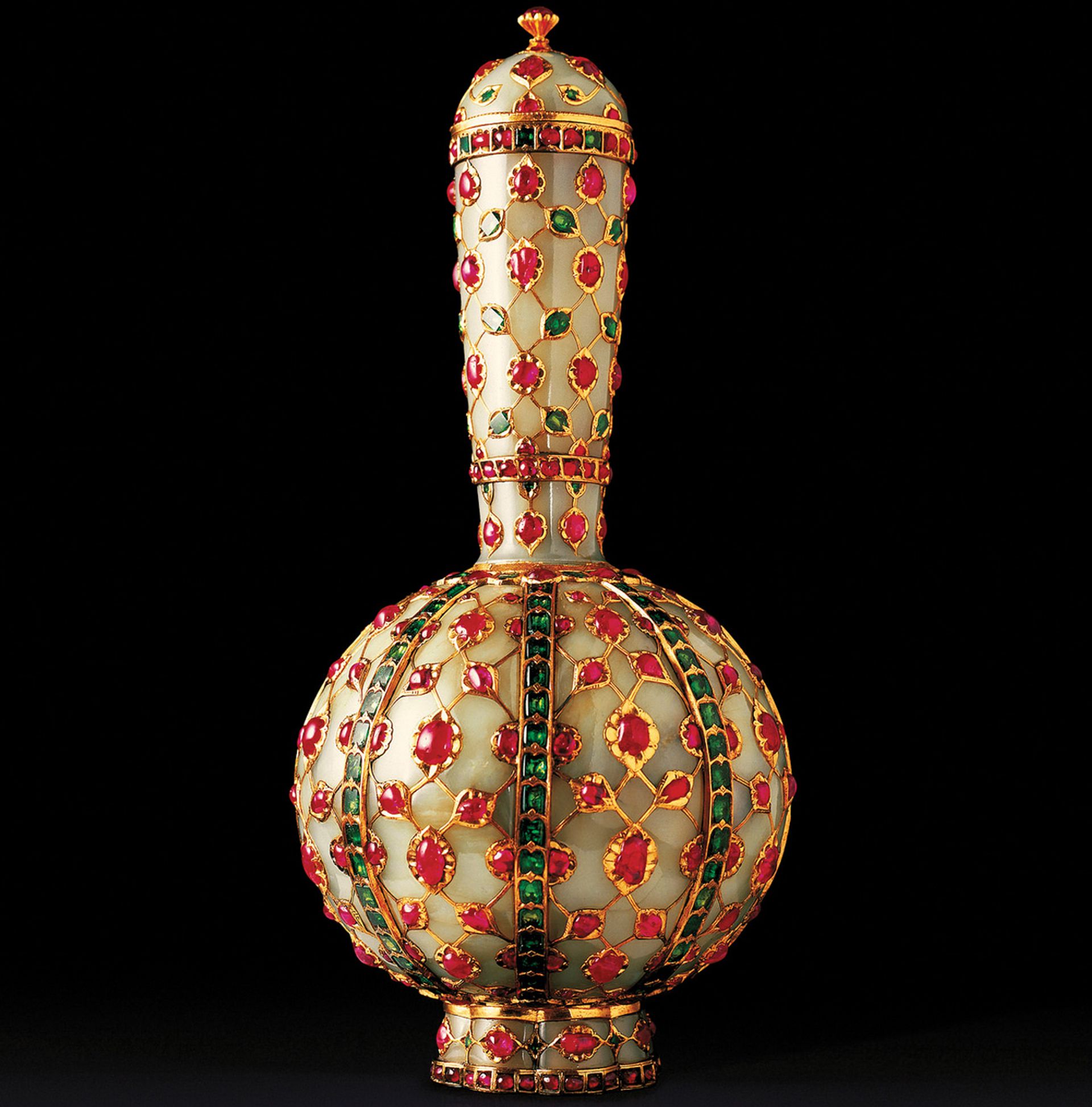 The jade wine flask was acquired by the military leader Lord Clive of India after winning the Battle of Plassey in Bengal in 1757. It remained with his descendants, who first lent it to the V&A in 1963. In 2004, the descendants sold the vessel at Christie’s in London; the buyer was the late Sheikh Saud bin Mohammed Al-Thani, then the Qatari culture minister.