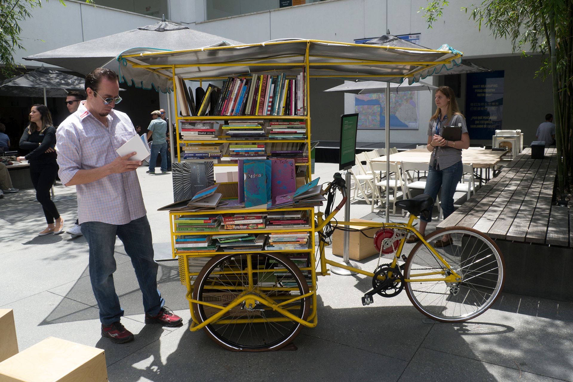 The Getty has long cited the fact that nearly half of Los Angeles has Latin roots as a driving reason for choosing Latin American art as the theme of the second edition of PST. And Antena Los Ángeles, a collective of “language justice” activists and writers, is helping participating museums reach more of that demographic through live interpretation, catalogue translation and at least one Instagrammable project: a Mexican-style cargo tricycle stocked with small-press books, parked in the lobby of the Los Angeles Public Library—a bilingual library within the library. Called the Antena Móvil, it arrives on 21 October.