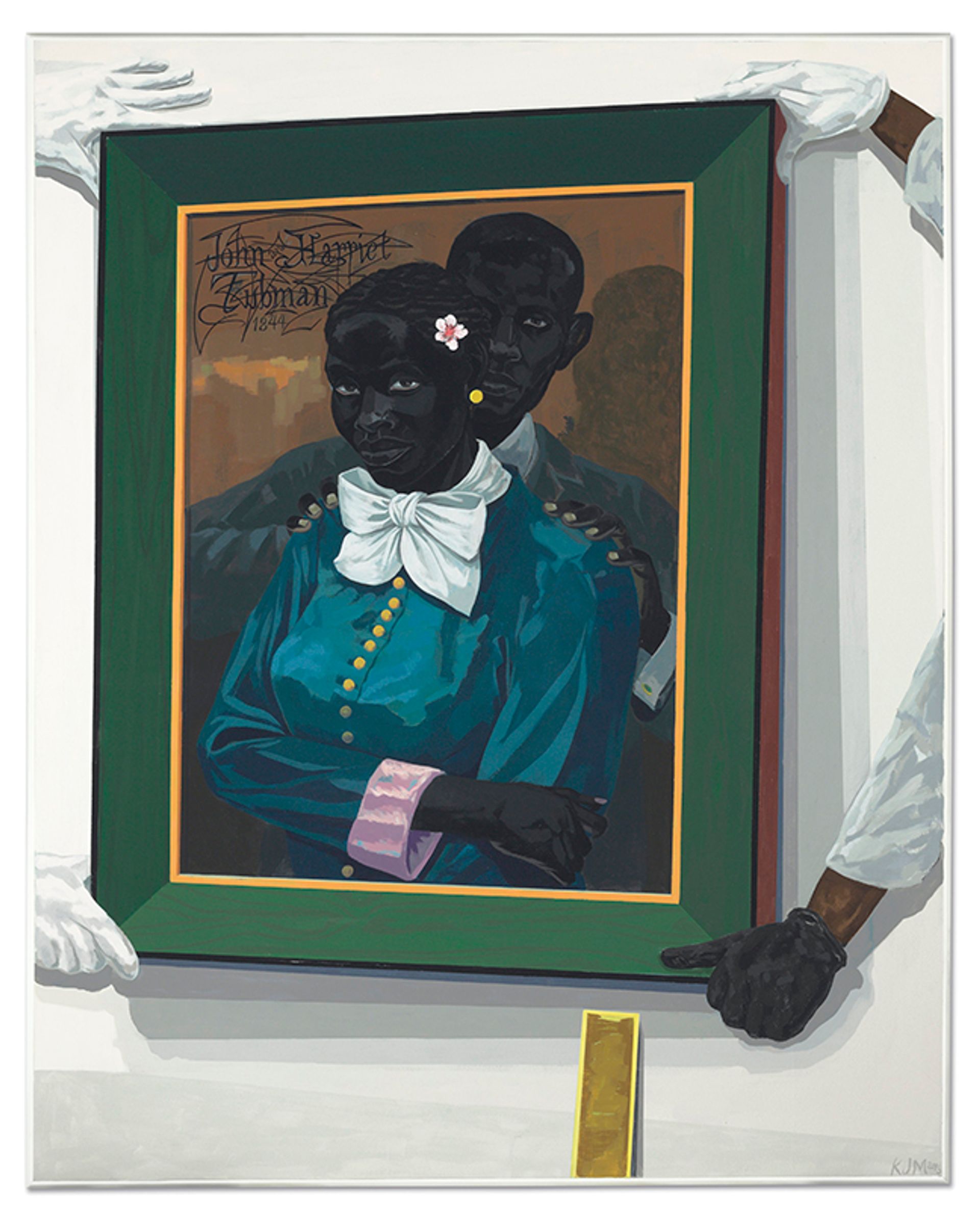 The atmosphere in the jam-packed Rockefeller Center saleroom just as quickly turned serious with Kerry James Marshall’s masterful Still Life with Wedding Portrait from 2015 (est. $1m-1.5m), featuring the Abolitionist couple John and Harriet Tubman and included in the artist’s recent, critically acclaimed traveling retrospective. It attracted 15 bidders, according to head of sale Sara Friedlander, and sold for $4.2m at the hammer, a record final price of $5,037,500.