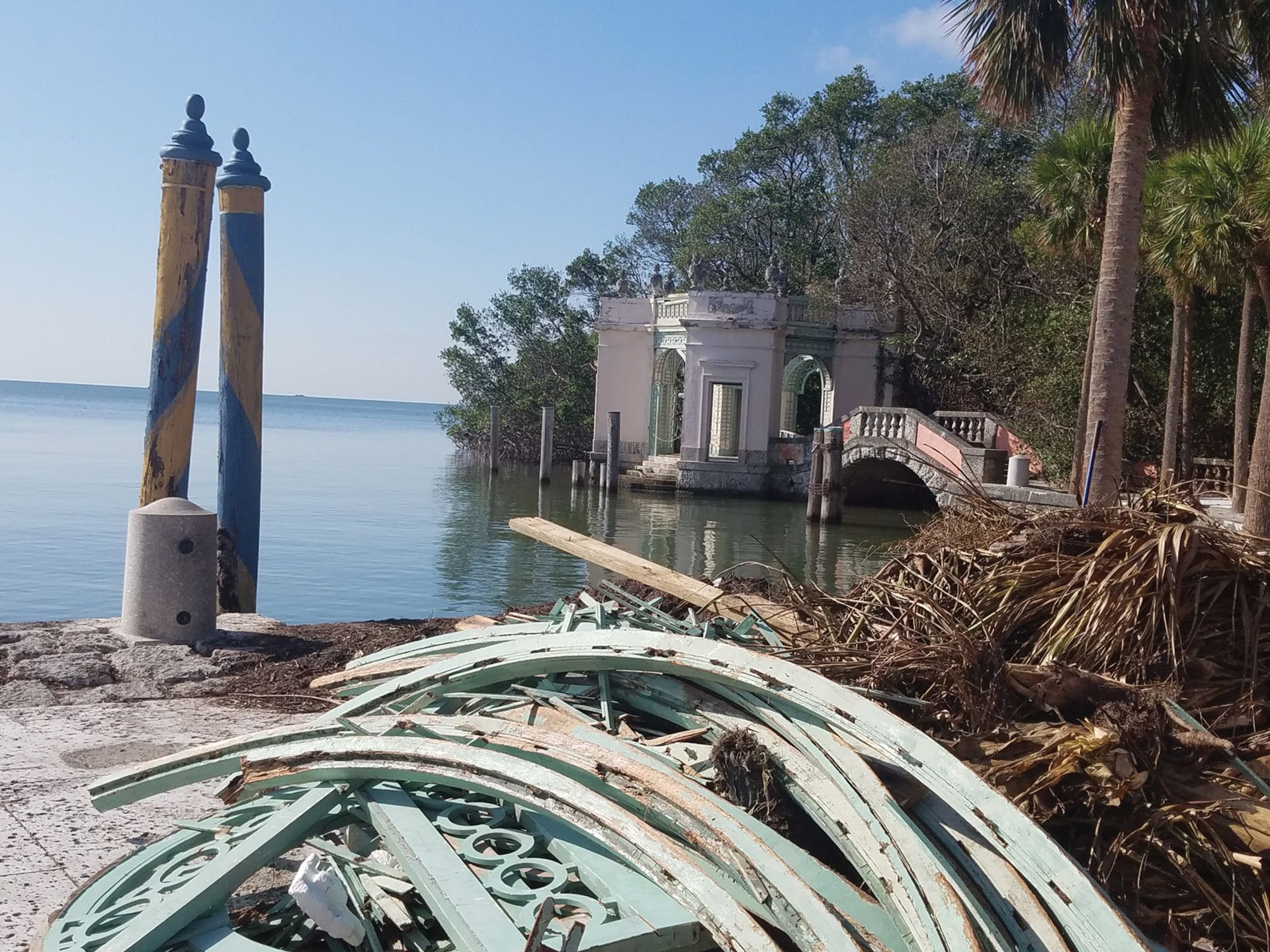 Debris from the destroyed roof of Vizcaya’s tea house gazebo, seen in the background Alejandra Serna