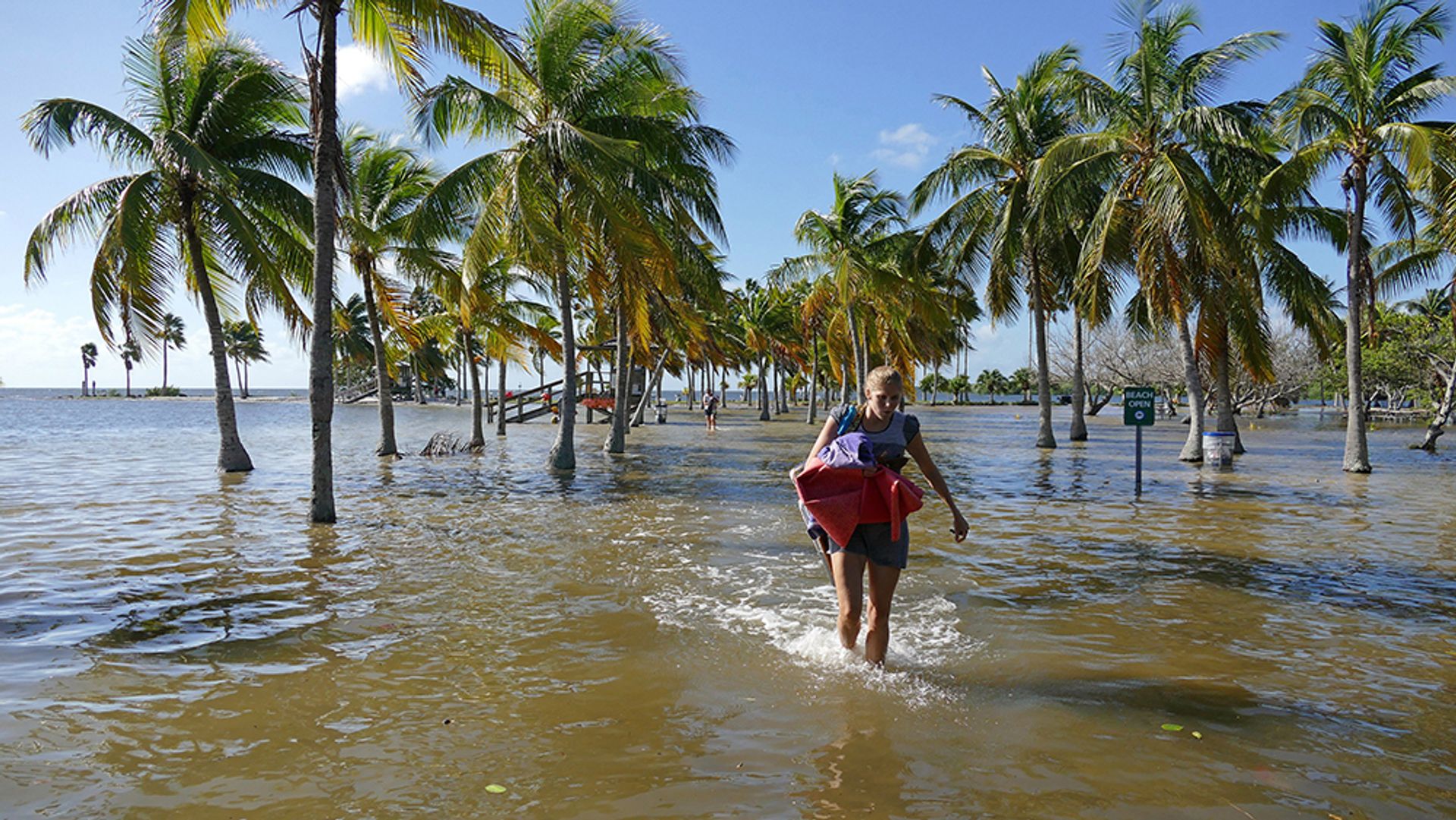 A beachgoer at Matheson Hammock Park, on Old Cutler Road, packs up and leaves for the day once the King Tide took over Monday morning, Oct. 17, 2016. Parts of Matheson Hammock Park were inundated with sea water during the King Tide Monday morning Emily Michot/Miami Herald/TNS via Getty Images