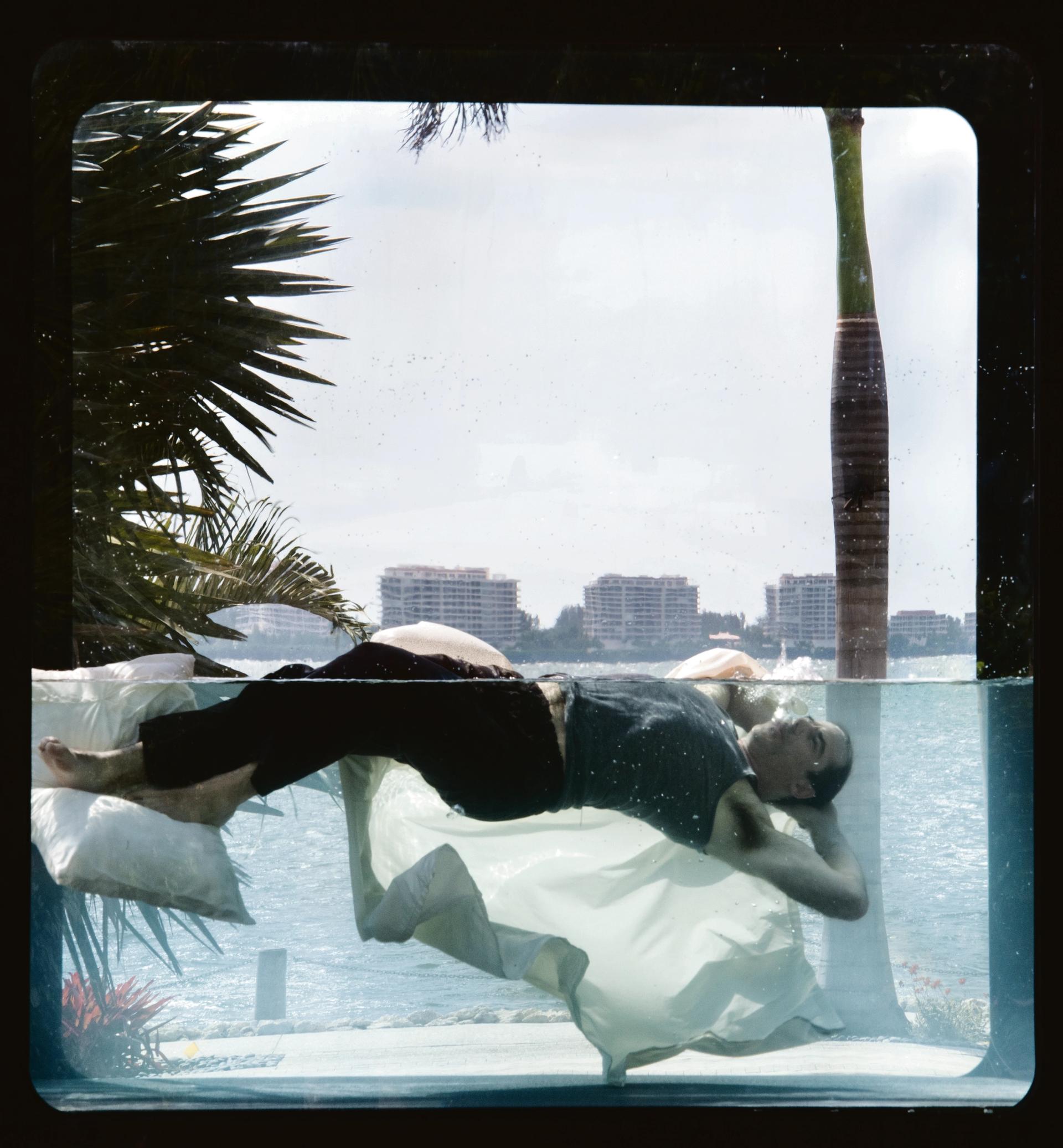 His research prompted the work Holoscenes, shown in Miami in 2015, and in numerous cities across the world. It evokes that original vision by placing performers in a tank of water, where they carry out everyday tasks—sleeping, applying make-up, cleaning—only for the water to rise and submerge them.