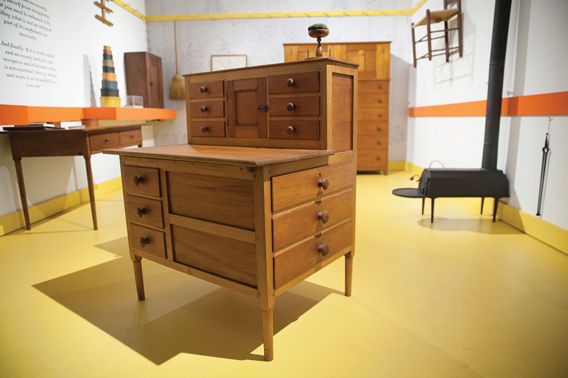 “This could be the first time that Shaker [furniture] is being offered for sale in South Florida,” says the antiques dealer John Keith Russell, whose stand is devoted to historic pieces of 19th-century furniture and tools. Form was dictated by function when it came to Shaker furniture, and this sewing desk, stripped of all elaborate decoration, is a purely functional piece. Russell sold several objects during the fair’s VIP preview, including a stove, which he jokes is “just what you need in Miami”.