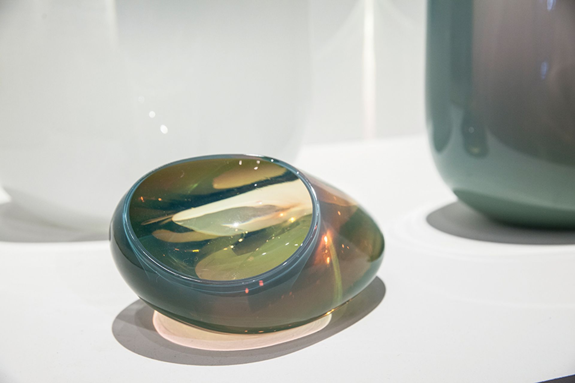 The designer John Hogan produces works in glass that are highly sensitive to the various ways we perceive this visually shifty material. Mere is a one-of-a-kind object, a suave decorative study in a brownish-caramel colour. Many of Hogan’s designs are rooted in that same principle of non-repetition. “It’s about this broader base of work that strives hard not to duplicate itself,” says the gallery’s owner, David Alhadeff. “What becomes signature for him is the experimentation, the continuously playing around and toying with glass.”