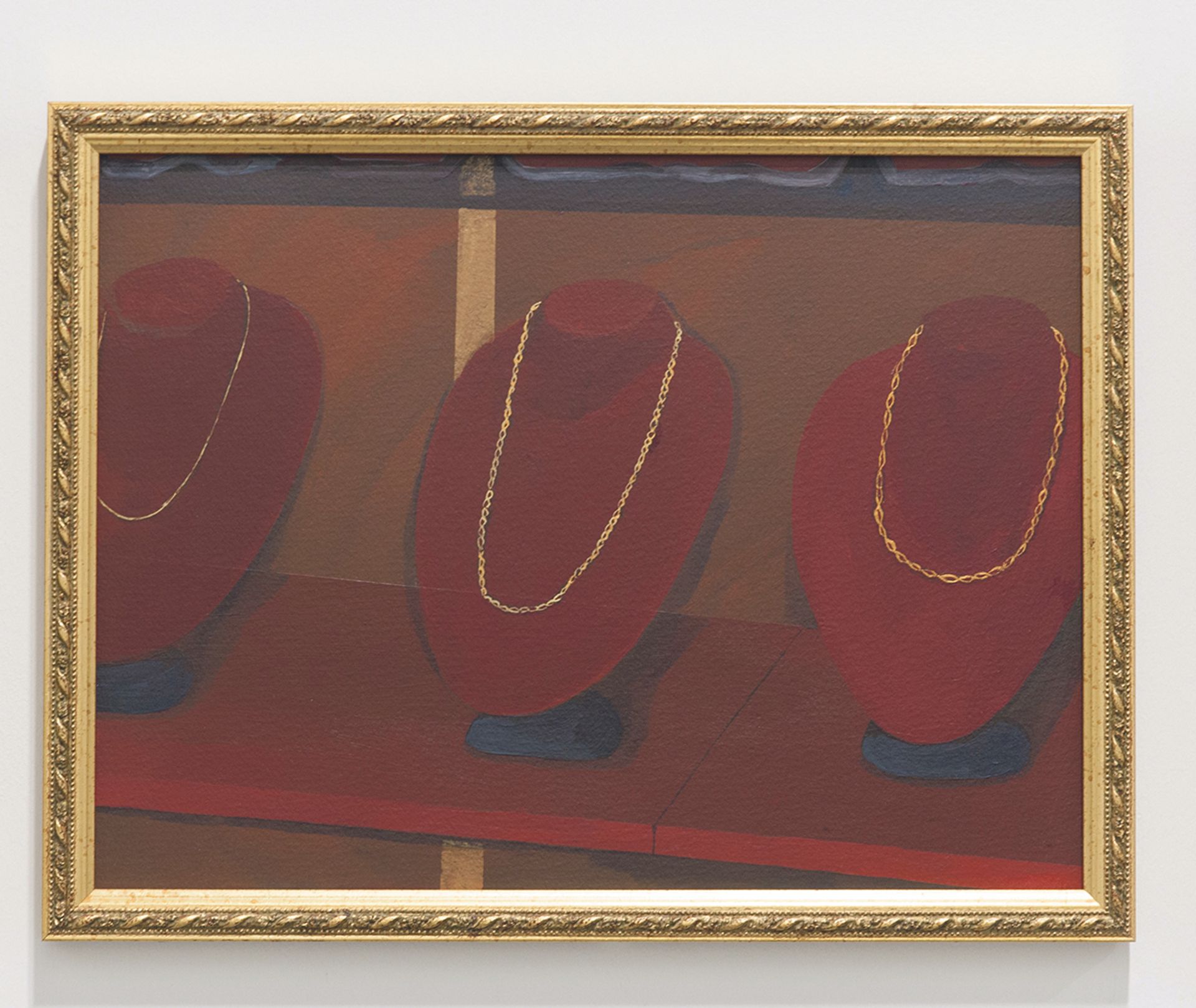 In her cosy diaristic paintings in the Kabinett sector, executed with nods to David Hockney and set in vintage frames, Farida El Gazzar reflects on life—past and present—in Alexandria, Egypt, where she was born and raised. Her simple views of gold necklaces, rings and bracelets are wistful references to jewellery shops and the political climate since the Arab Spring. “It’s a romantic view of the Alexandria where she grew up, but it’s slowly disappearing across the Middle East,” says the gallery’s co-owner Arsen Kalfayan.