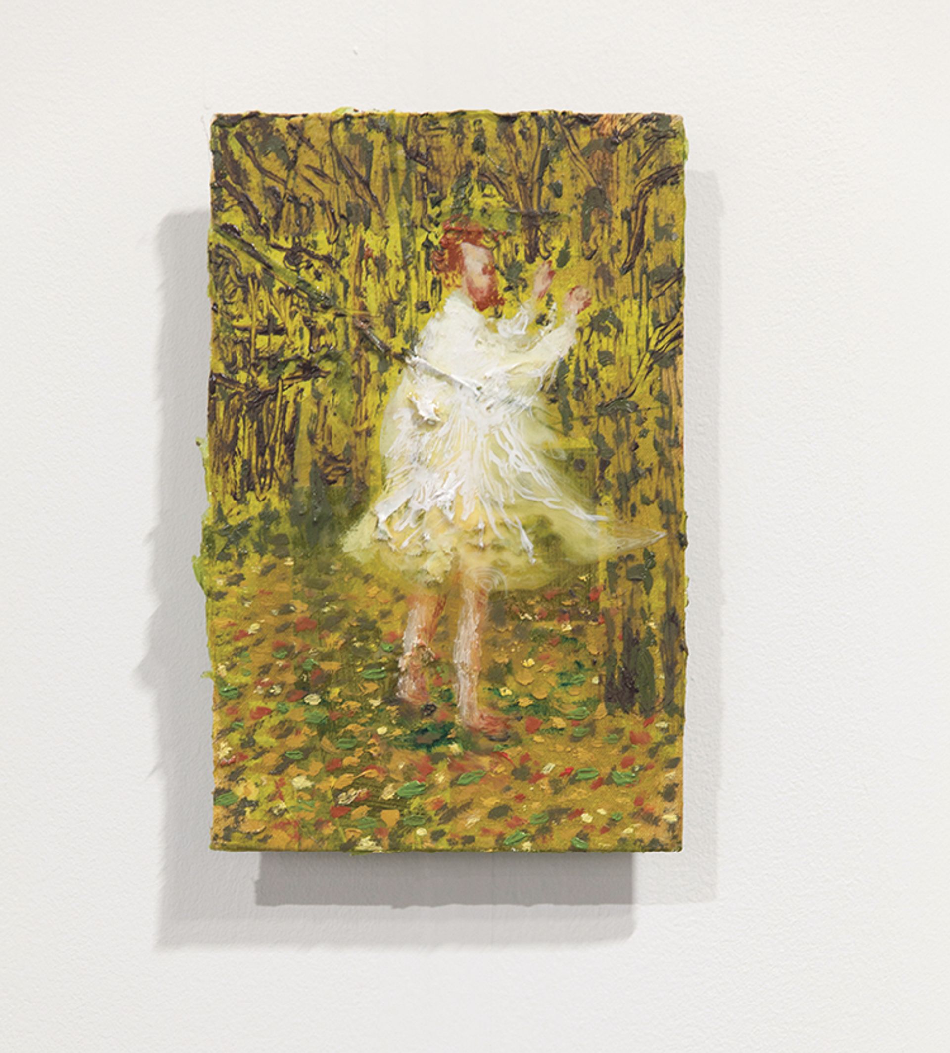 The gallerist Richard Ingleby describes the Scottish painter Andrew Cranston as a storyteller with no story to tell. His pint-sized works on hardback book covers are touched with absurdity. “He writes these little paragraphs about each painting, usually after he has created it, that tell you what he was thinking,” Ingleby says. The Fall, for example, was inspired by an illustration from the novel Don Quixote, yet “this took my thoughts to Van Gogh, perhaps in the grounds of the Saint-Rémy hospital [where he was a patient]”, the artist writes.