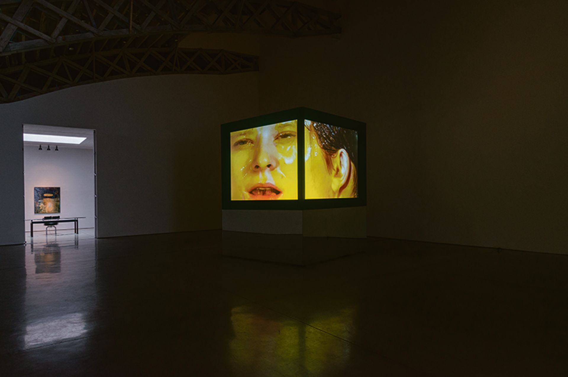 If medical technology’s ultimate goal is immortality, then death is arguably the decisive experience that marks us as human. Created in response to the Aids crisis, Judith Barry’s video sculpture, Imagination, dead imagine (1991), shows a head projected on to a 10ft-high cube. Various liquids that resemble bodily fluids are poured over the head, which is then wiped clean, only to be drenched again—a reference to the images of people dying of Aids at that time.