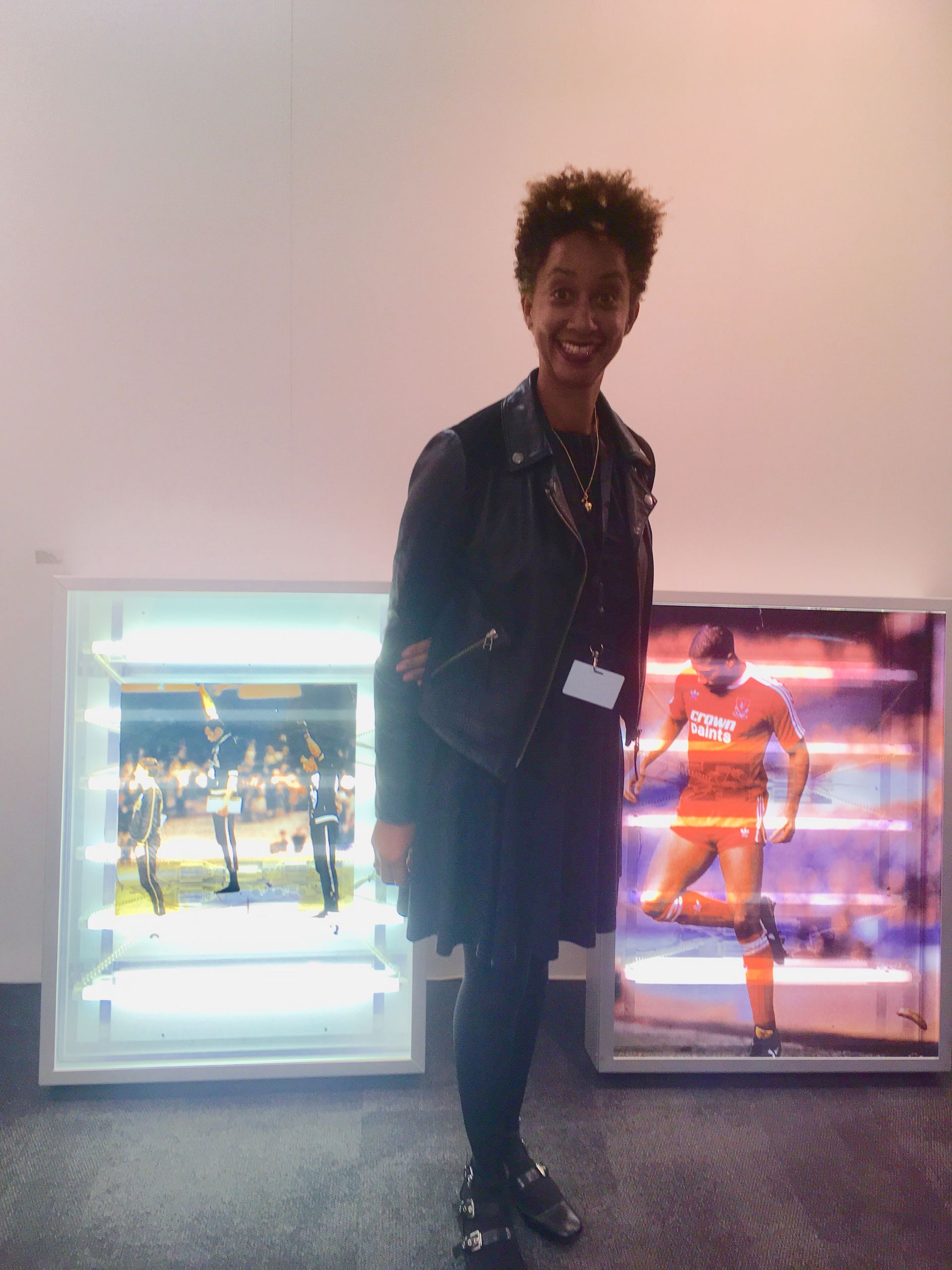 Iniva director Melanie Keen with Donald Rodney’s lightboxes at London Art Fair Louisa Buck