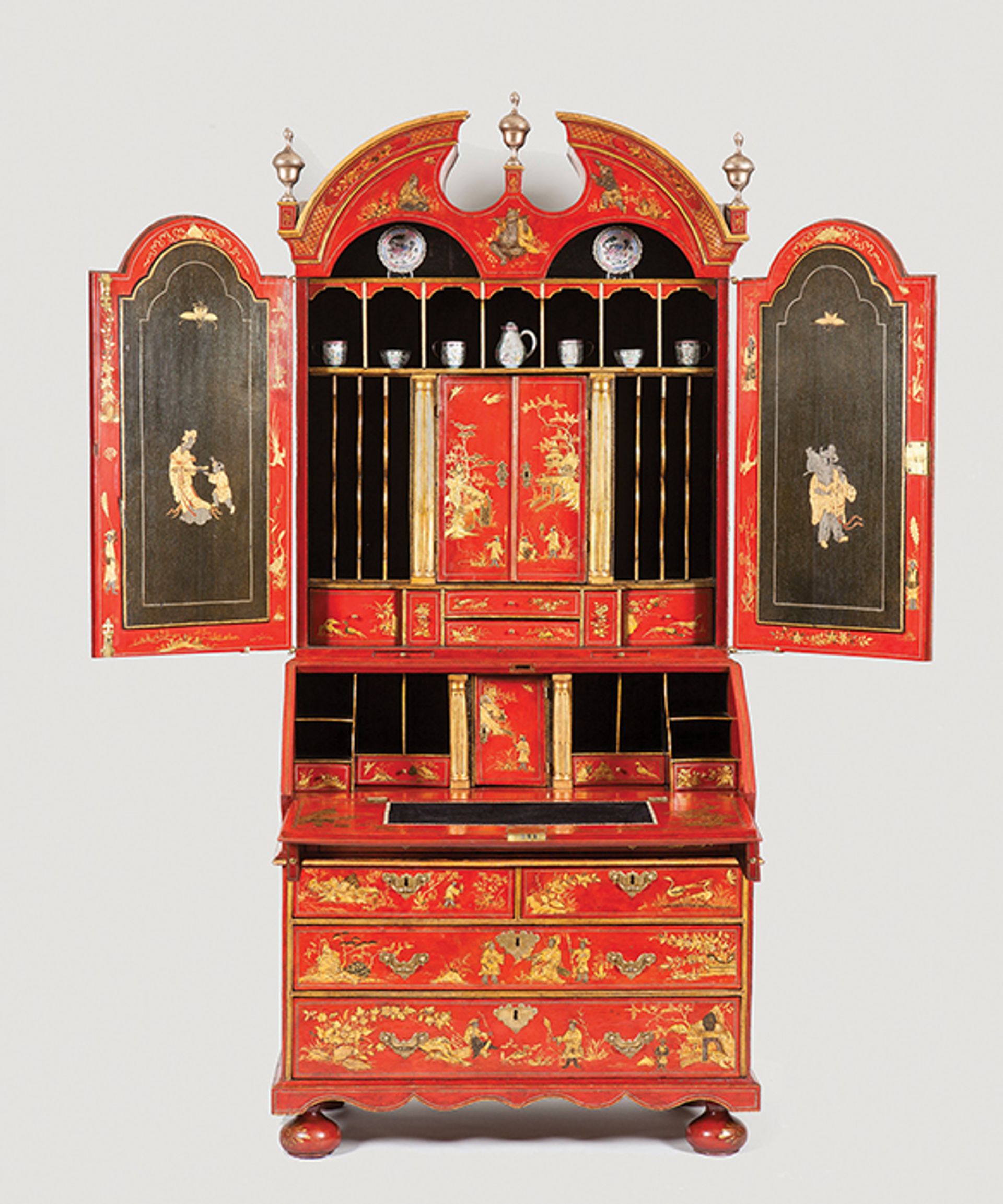 Red Japanned bureau cabinet (English, circa 1720), shown by London's Apter-Fredericks Courtesy of Apter-Fredericks