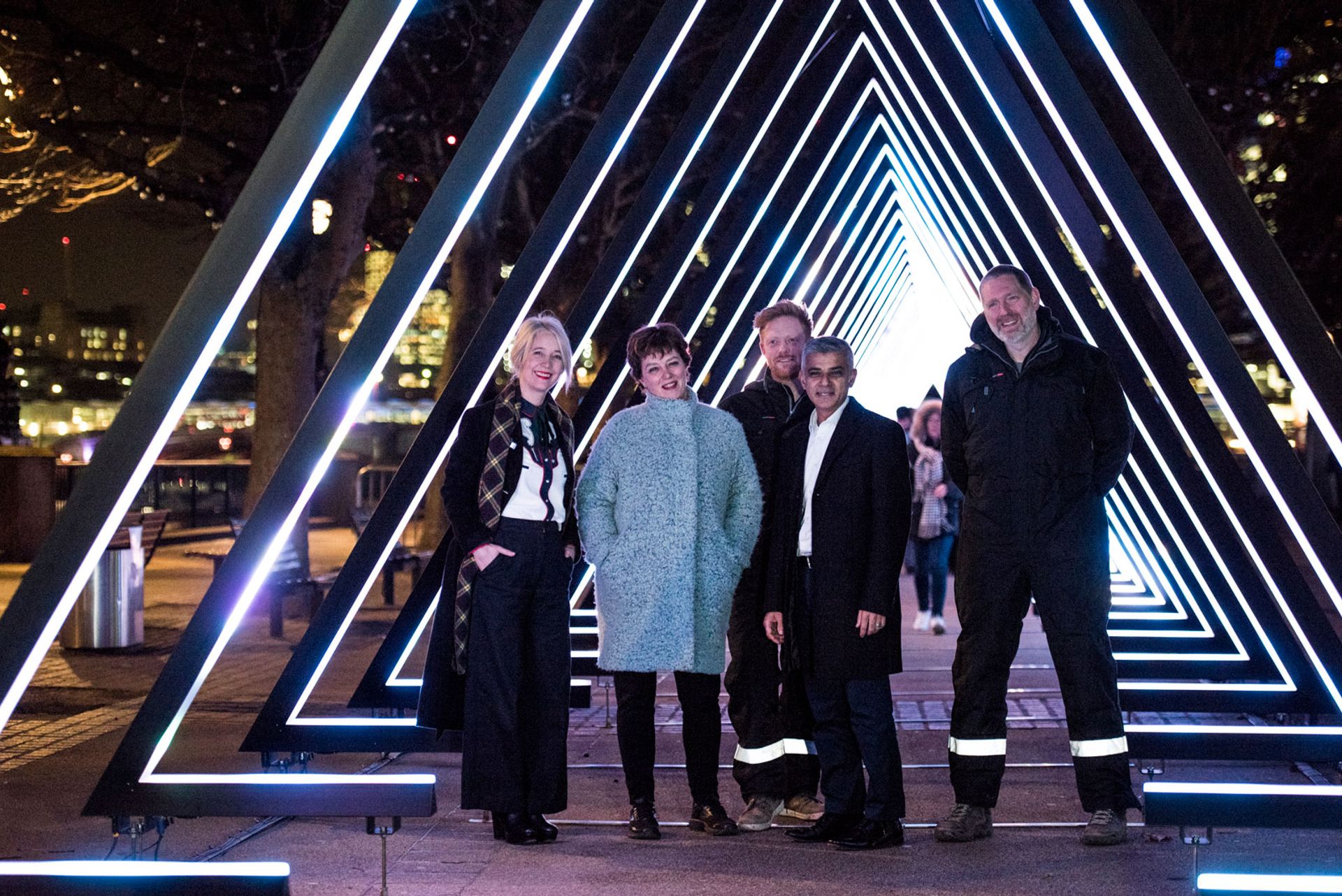 “Lumiere London promises to be one of the brightest and most exciting times of the year. I look forward to welcoming millions of visitors to the capital to enjoy this city-wide spectacle,” says the Mayor of London, Sadiq Khan. Here he is standing (second from right) in front of The Wave by Vertigo. Caroline Teo