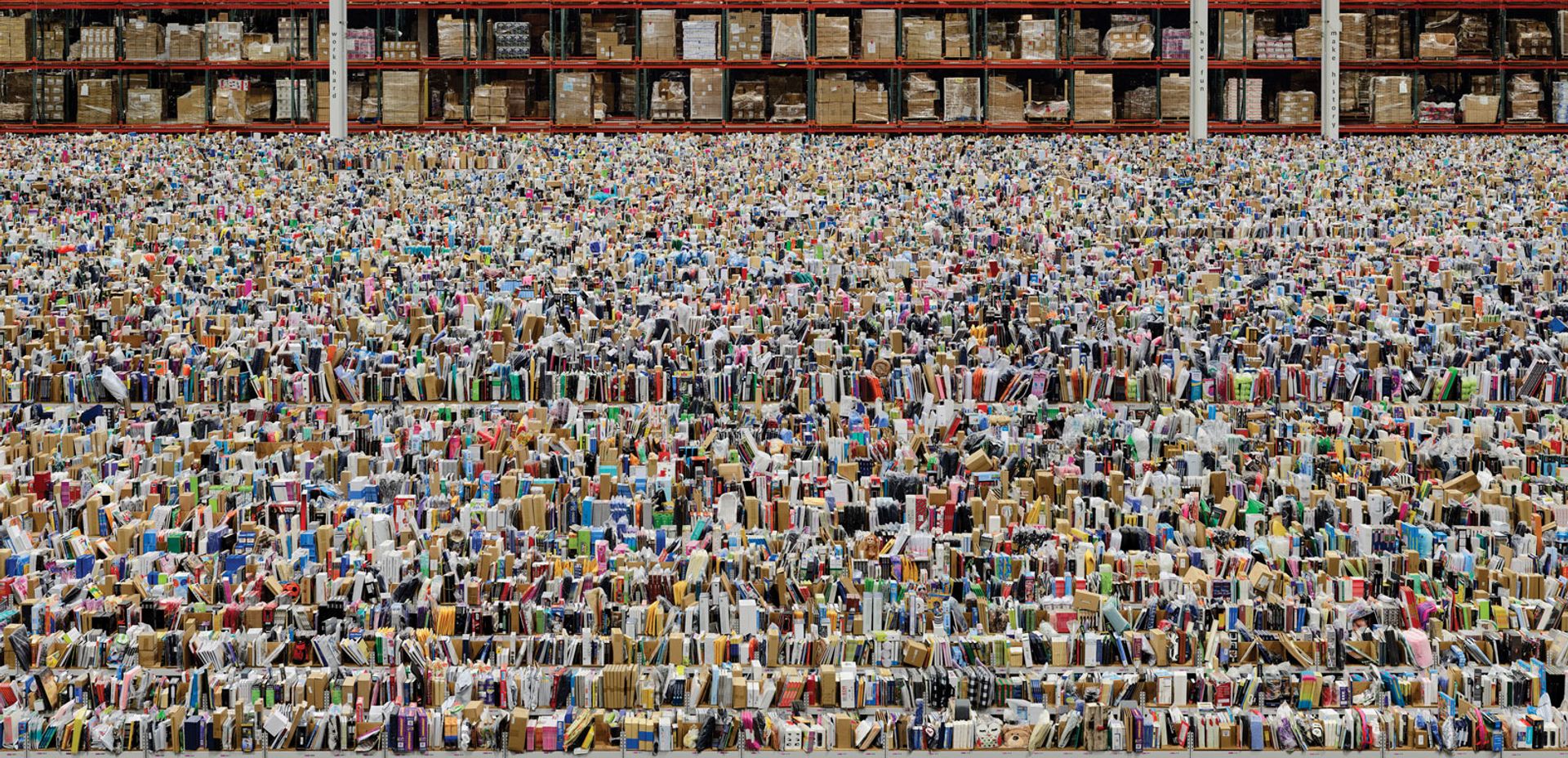 Large formats are vital to the success of Gursky’s work. Arguably, no other artist has captured the scale of late capitalism and globalism as effectively as the German. Images like the Chicago Board of Trade (1999) and Amazon (2016, above), picturing the online company’s enormous warehouse in Phoenix, Arizona, represent a new kind of sublime, with all the terror and beauty that term conjures. Andreas Gursky / DACS, 2017, courtesy of Sprüth Magers