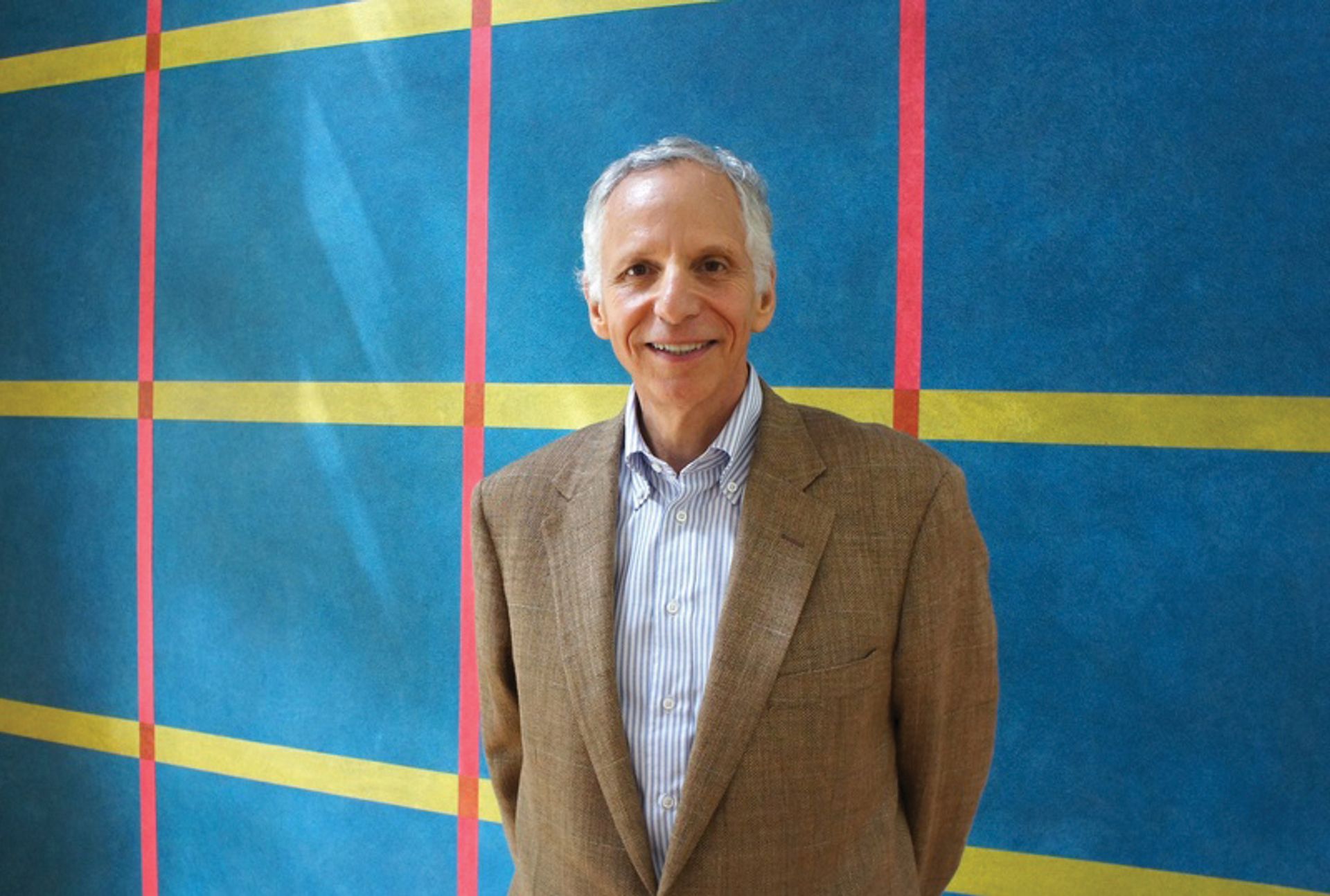 The collector William Stern, in front of Wall Drawing #679, acquired the piece in 1991. © Tyler Rudick