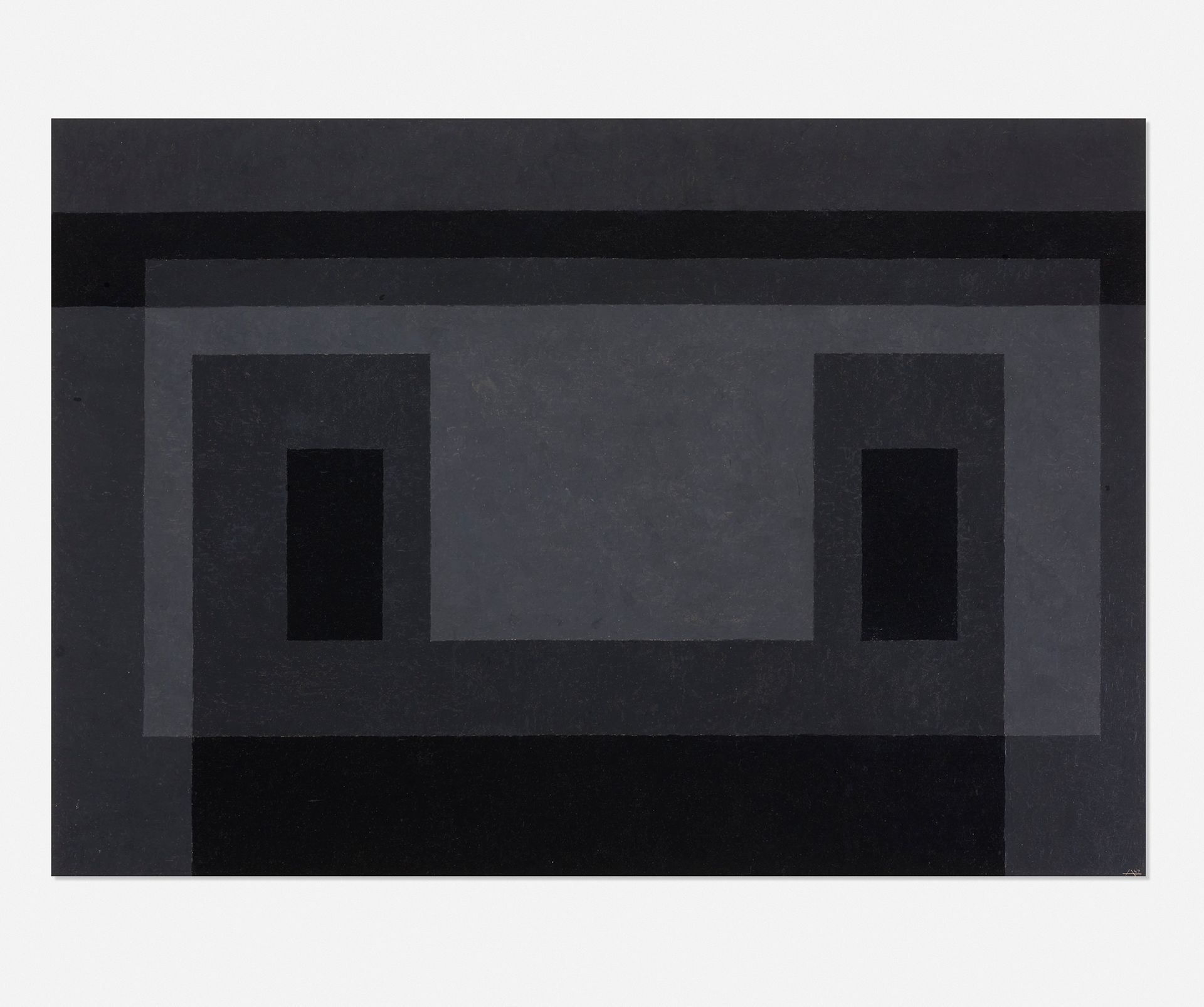 This oil on masonite painting featuring geometric grey and black gradients is the largest in the Variant/Adobe series that Josef Albers produced between 1946 and 1966, which was influenced by the Mexican landscape and the architecture of its pre-Columbian sites. Beginning in the mid-1930s Albers traveled frequently to Mexico, which he declared was "truly the promised land of Abstract art" in a letter to his Bauhaus colleague Wassily Kandinsky. Works from this series are currently featured in an exhibition (through 28 March) at the Solomon R. Guggenheim Museum in New York that explores how Mexico informed Albers's thinking, including his famous Homage to the Square series. This painting comes from the collection of the US architect Bertrand Goldberg and has been shown at the Museum of Modern Art, New York, and other major museums. The "somber tones communicate a seriousness, and the subtlety of colour interaction is quite powerful in person", says the auction house's founder, Richard Wright, who adds that there's been a recent surge of interest in Albers' work at auction. Last October, Sotheby's London set a new record for the artist at around £2.3m.