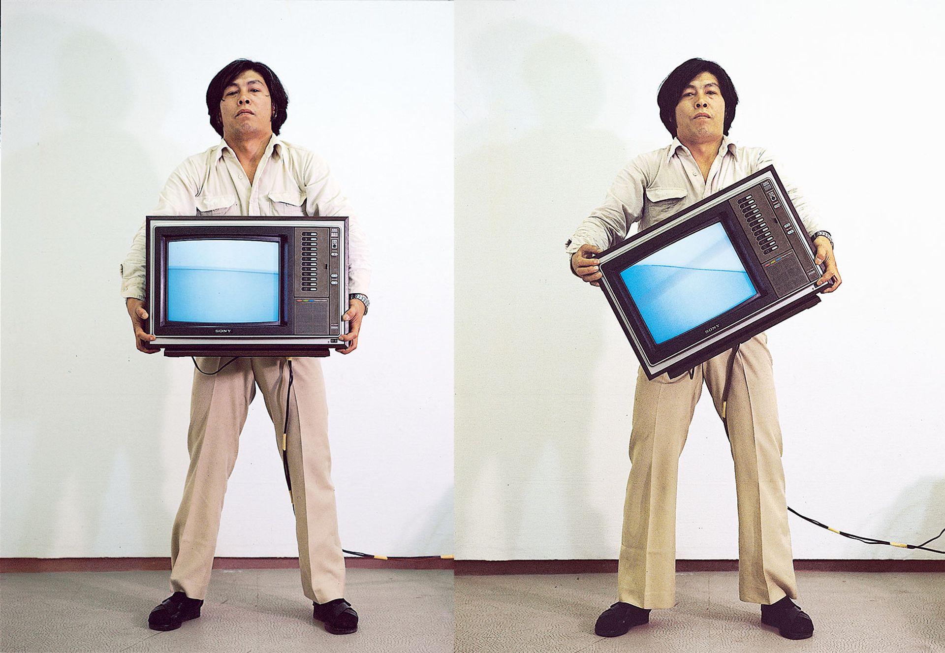 Park Hyun-Ki (1942-2000), showing with Gallery Hyundai, Seoul. While Nam June Paik, considered the father of video art, might be better known internationally, Park Hyun-Ki is one of the earliest artists inside Korea to experiment with new media. Studying painting and architecture at Hongik University, he supported himself as an interior designer but started creating works using video monitors as sculptural elements in the 1970s after seeing Paik’s Global Groove at the Daegu American Cultural Center. Park’s pieces often approach technology through a decidedly Eastern lens, such as his carefully stacked Untitled (TV Stone Tower), or his kaleidoscopic Mandala video projections. Above, a c-print of Park Hyun-Ki's performance Video Inclining Water (1979/2018)